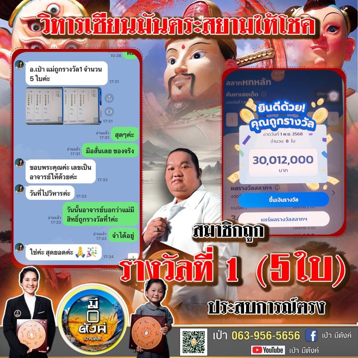 ลูกศิษย์ เฮ!!!วิหารเซียน มันตระสยาม ให้โชค รางวัลที่1 ทีเดียว5ใบรวด รับเต็มๆ30ล้าน