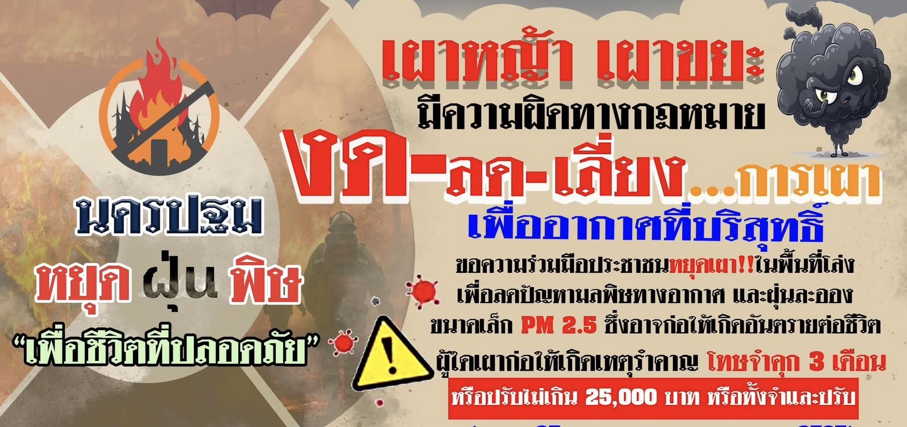 นครปฐม ผู้ว่าฯแจ้งประชาสัมพันธ์สถานการณ์ ฝุ่น PM.2.5ในจังหวัดนครปฐม