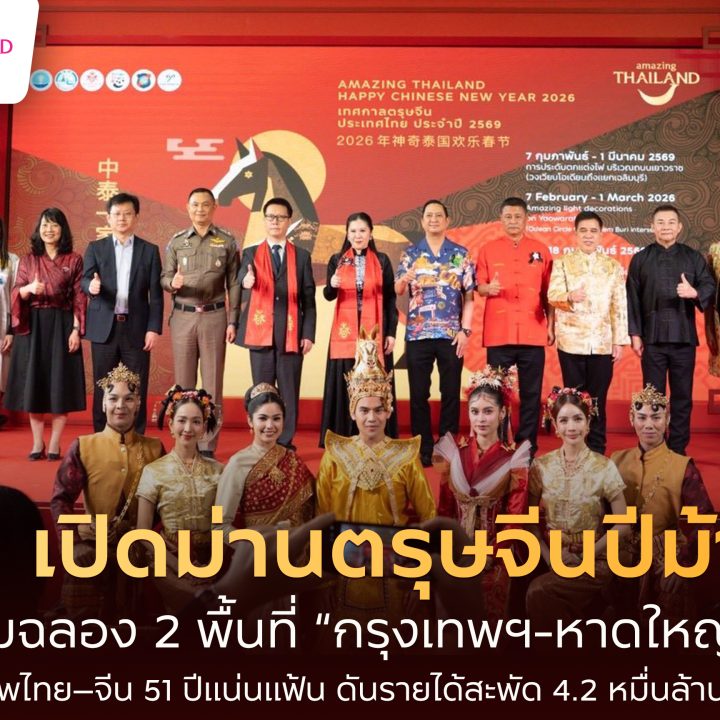 ททท. เปิดม่านตรุษจีนปีม้าทอง ฉลอง 2 พื้นที่ “กรุงเทพฯ-หาดใหญ่” สะท้อนมิตรภาพไทย–จีน 51 ปีดันรายได้ 4.2 หมื่นล้านบาท
