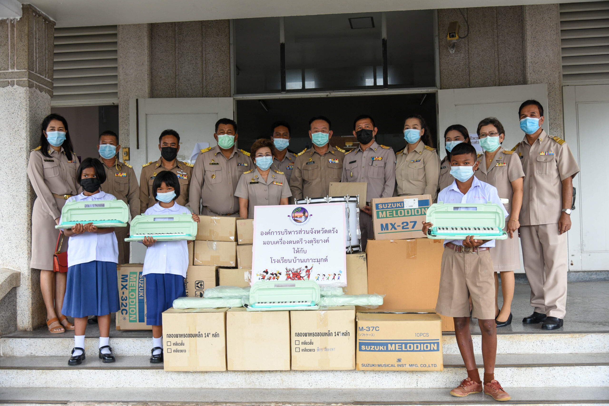ตรัง นายก อบจ.พร้อมคณะ ส่งมอบเครื่องดนตรีวงดุริยางค์ให้กับคณะครู นร.โรงเรียนบ้านเกาะมุกด์