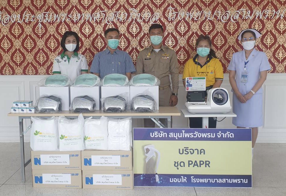 นครปฐม สมุนไพรวังพรม บริจาคชุดอุปกรณ์ PAPRและ เครื่องวัดความดันสอดแขนให้รพ.สามพราน