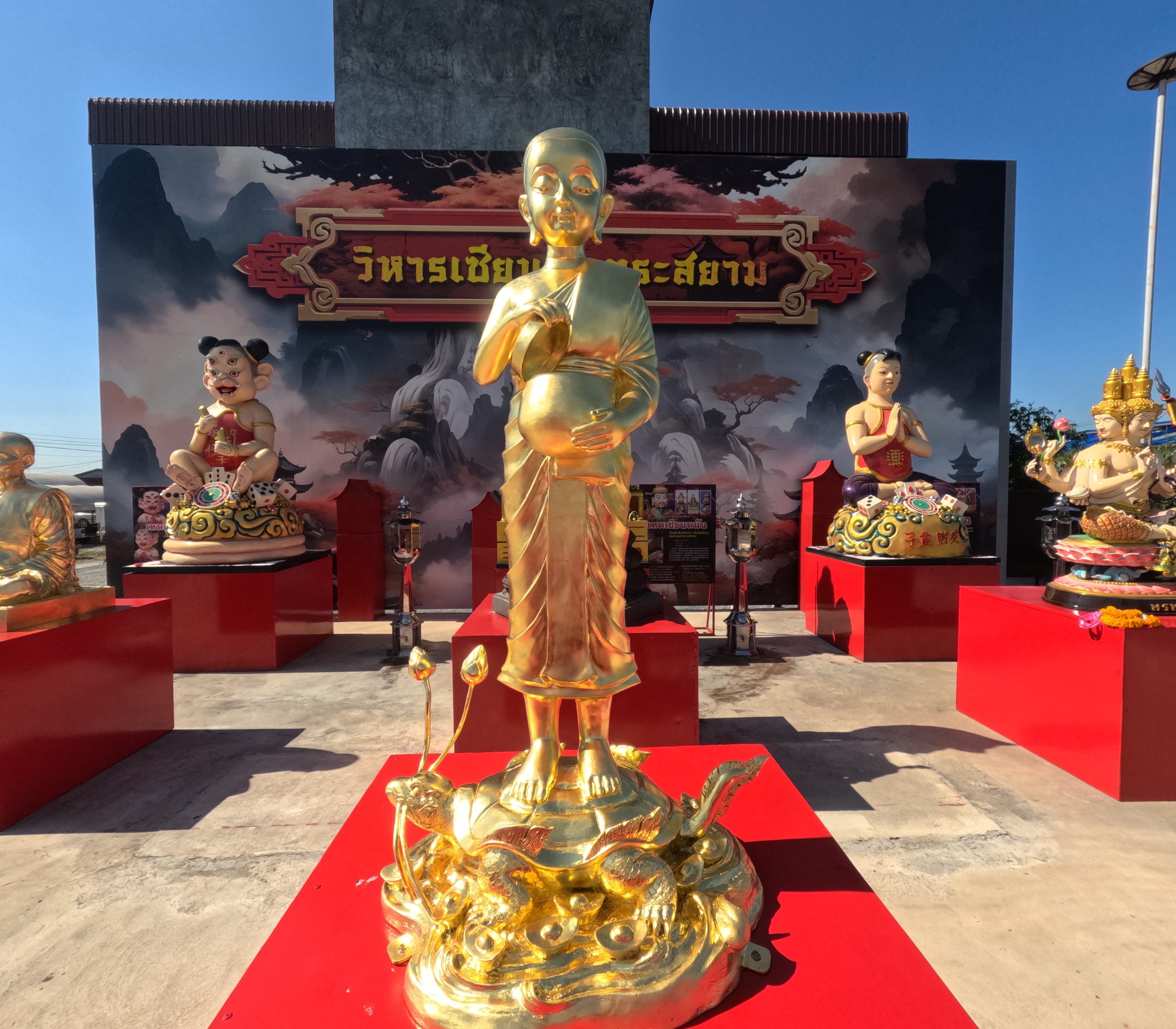 อาจารย์แขก มันตระสยาม เบิกเนตรพระอุปคุตยืนอุ้มบาตร และหล่อองค์ท้าวจตุคามรามเทพ วิหารเซียนมันตระสยาม