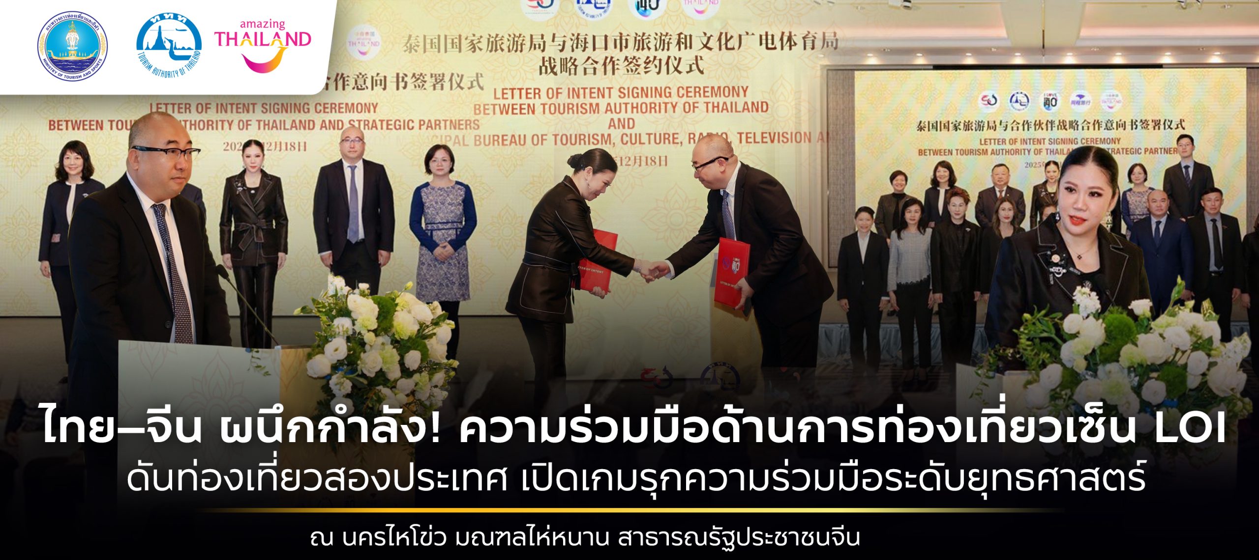 ไทย-จีน ผนึกกำลังลงนามการท่องเที่ยว Letter of Intent (LOI) เปิดบทใหม่ส่งเสริมความร่วมมือระดับยุทธศาสตร์ ณ นครไหโข่ว