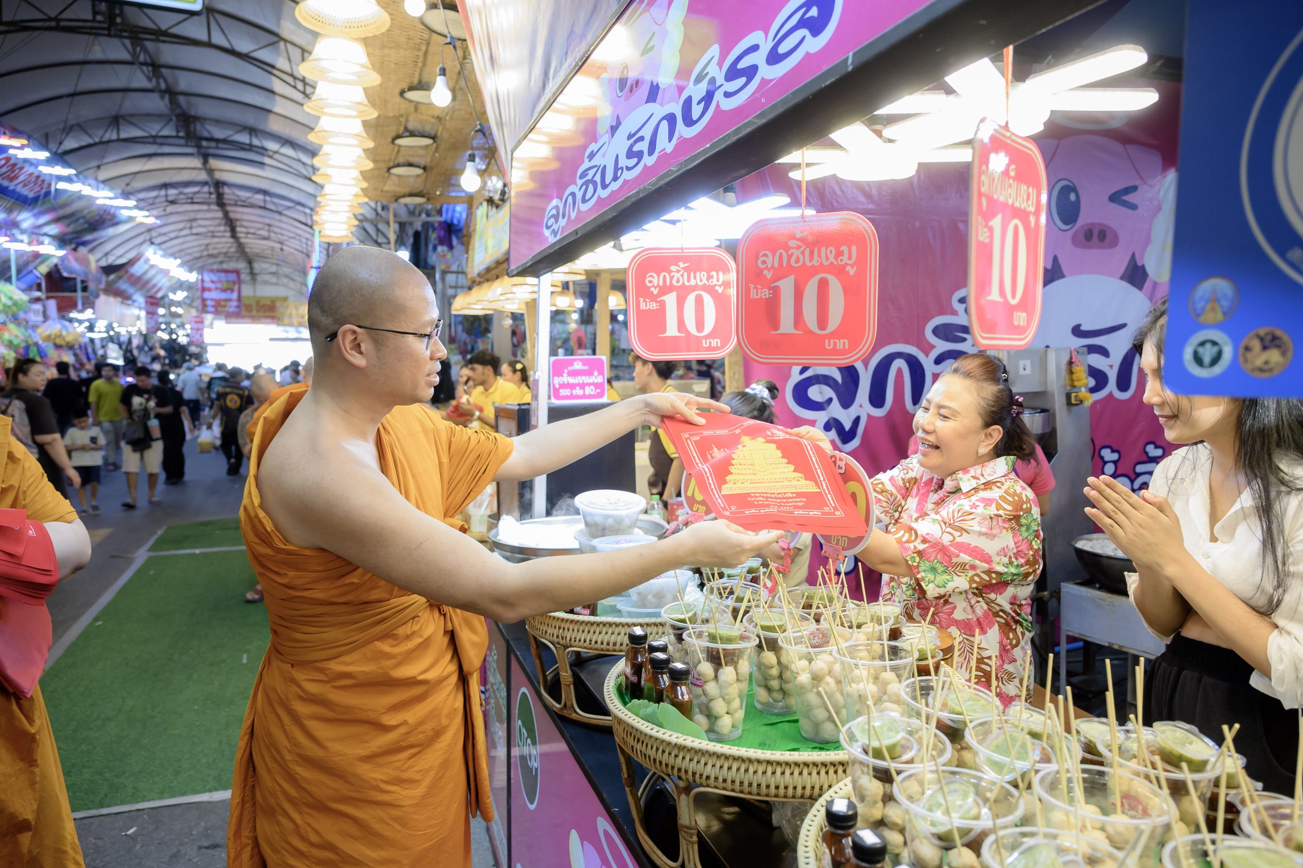 พ่อค้า แม่ค้าขายงานวัดไร่ขิง ปลื้มใจ รับผ้ายันต์และวัตถุมงคลที่ระลึก งานประจำปีวันสุดท้าย