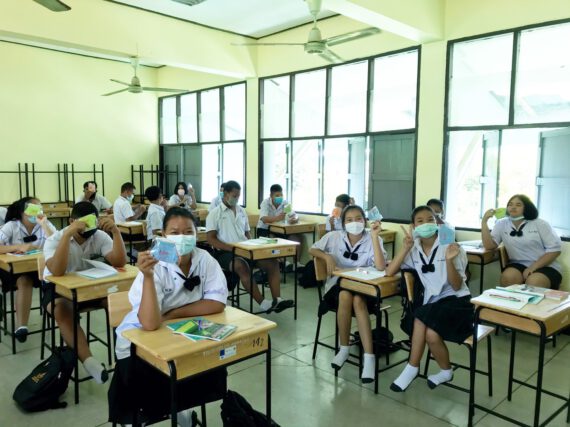 นครปฐม วัดไผ่ล้อมส่งตัวแทนมอบหน้าผ้ามัสลิน”ยันต์นะปัดตลอดแบบเด็กให้นักเรียน