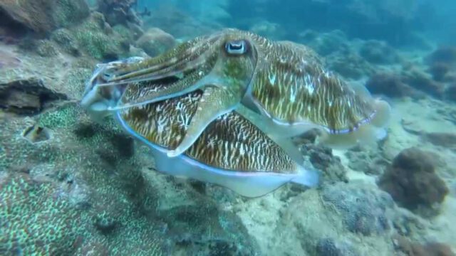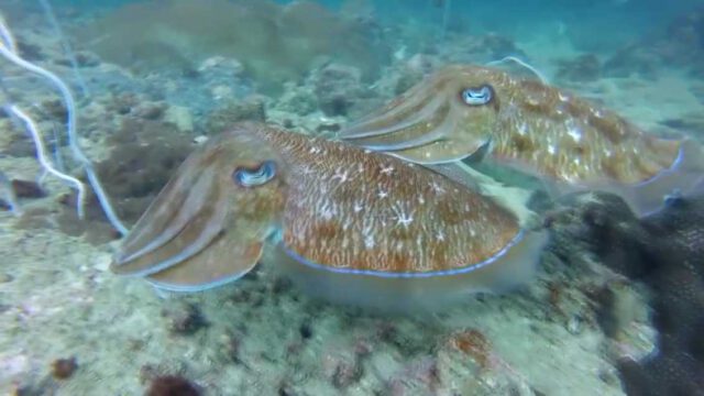 แต่ที่ทำให้นักท่องเที่ยวตื่นตาตื่นใจมากที่สุดเมื่อนักท่องเที่ยวไปดำน้ำดูปะการังน้ำตื้นบริเวณเกาะเชือก ก็พบกับเจ้าหมึกกระดองยักษ์ที่กำลังเกี่ยวพาราสี อวดโฉมให้นักท่องเที่ยวได้ชมกันอย่างใกล้ชิด สร้างความประทับใจให้กับนักท่องเที่ยวเป็นอย่างมาก ซึ่งหลายจุดนักท่องเที่ยวสามารถมองเห็นปะการังที่อยู่เหนือระดับน้ำเพียง 2-5 เมตรเท่านั้น ส่วนสาเหตุที่ปะการังสวยงามขึ้น เพราะช่วงปิดโควิด-19 ที่ผ่านมา จึงทำให้เกาะต่าง ๆ ฟื้นตัวและมีความอุดมสมบูรณ์มากขึ้น โดยเฉพาะปลาทะเลและแนวปะการังอ่อนสีสันต่าง ๆ ซึ่งนักท่องเที่ยวบางกลุ่มใช้เวลาดำน้ำดูปะการังอยู่นานเกินกำหนด จนไกด์นำเที่ยวต้องพากลับขึ้นเรือเพื่อเดินทางไปเล่นน้ำที่จุดอื่นอีกต่อไป