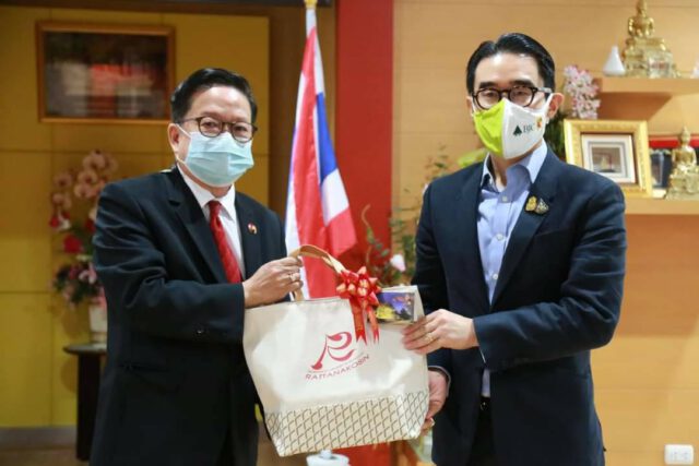 ในวันพุธที่ 27 มกราคม 2564 มทร.รัตนโกสินทร์ โดย ผศ.ศิวะ วสุนธราภิวัฒก์ อธิการบดี พร้อมด้วย ผศ.วรางคณา นิ่มเจริญ ผู้ช่วยอธิการบดี อ.รพี ม่วงนนท์ ผู้อำนวยการวิทยาลัยนวัตกรรมการจัดการ และดร.สมศักดิ์ วาทินชัย กรรมการผู้จัดการ บริษัท ดีไซน์ ออลเทอร์เนทีฟ จำกัดและประธานชมรมบัณฑิตกิตติมศักดิ์ ร่วมให้การต้อนรับ คุณอัศวิน เตชะเจริญวิกุล ประธานเจ้าหน้าที่บริหารและกรรมการผู้จัดการใหญ่ บริษัท บิ๊กซี ซูเปอร์เซ็นเตอร์ จำกัด (มหาชน) และบัณฑิตกิตติมศักดิ์ มทร.รัตนโกสินทร์ ประจำปีการศึกษา 2562 พร้อมด้วยคุณวิภาดา ดวงรัตน์ รองประธานกรรมการบริหารคนที่1 คุณพลสินธ์ ปวนะฤทธิ์ ผู้อำนวยการฝ่ายธุรกิจสัมพันธ์ และคุณชนนิกานต์ จันทร์บุรมย์ ผู้จัดการอาวุโสแผนกกิจกรรมเพื่อสังคม ที่มามอบของขวัญเนื่องในโอกาสสวัสดีปีใหม่ 2564 ท่านอธิการบดี