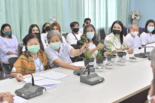 นายหมวดตรี ณัฐ วิบุลศิลป์ ประธานชมรมกำนันผู้ใหญ่บ้านอำเภอเมืองนครปฐม ได้กล่าวขอบพระคุณ ดร.ยุพิน รัชตวุฒิพงษ์ เจ้าของหมู่บ้านอยู่สบายเป็นอย่างสูงที่เล็งเห็นความสำคัญในการปฎิบัติหน้าที่ของกำนัน ผู้ใหญ่บ้านในแต่ละพื้นที่ ที่จะต้องคอยเฝ้าระวังให้ลูกบ้าน หรือหากมีลูกบ้านมีความเสี่ยงต่อการเป็นโควิด ก็ต้องเป็นหน่วยแรกในการเข้าไปช่วยเหลือลูกบ้านที่มีอาการก่อนเป็นอันดับแรก ซึ่งในการทำงานที่ผ่านมาทางชมรมกำนัน ผู้ใหญ่บ้านก็ต้องใช้งบส่วนตัวในการซื้อแมส แอลกอฮอล์ เอง ส่วนสมุนไพรที่นำมามอบให้ก็ถือว่าดีมากครับ ขอเป็นตัวแทนกำนัน ผู้ใหญ่บ้านในจังหวัดนครปฐมขอบคุณอีกครั้ง