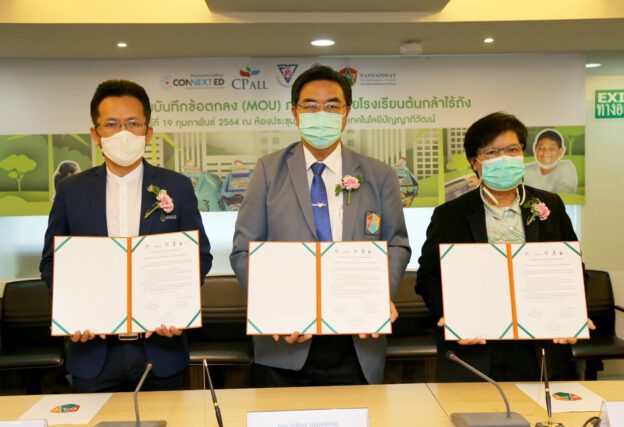 ที่วิทยาลัยเทคโนโลยีปัญญาภิวัฒน์ อ.เมือง จ.นนทบุรี ได้จัดพิธีลงนามบันทึกข้อตกลงความร่วมมือ(MOU)ภาคีเครือข่ายต้นกล้าไร้ถัง โดยนายวิเชียร เนียมน้อม ผู้แทนผู้รับใบอนุญาตและผู้อำนวยการวิทยาลัยเทคโนโลยีปัญญาภิวัฒน์ ลงนามร่วมกับนายตรีเทพ ปาลกะวงศ์ ณ อยุธยา ประธานคณะทำงานโครงการCONNEXT ED บริษัทซีพีออลล์ จำกัด(มหาชน) และ นางสาวสุดารัตน์ สังข์ฤทธิ์ ครูผู้รับผิดชอบโครงการต้นกล้าไร้ถัง โรงเรียนอนุบาลทับสะแก อ.ทับสะแก จ.ประจวบคีรีขันธ์ โดยมี ดร.ม.ล.สรสิริ วรวรรณ คณบดีคณะการจัดการการศึกษาเชิงสร้างสรรค์ สถาบันการจัดการปัญญาภิวัฒน์, น.ส.ศรีวิน ธรรมรังรอง ผู้อำนวยการกลุ่มนิเทศติดตามและประเมินผล ตัวแทน สพป.ชลบุรี เขต3 และ น.ส.ศิริรัตน์ พักโพธิ์เย็น ปฏิบัติหน้าที่ผู้อำนวยการกลุ่ม DLICT ตัวแทน สพป.ชลบุรี เขต3ร่วมในพิธี