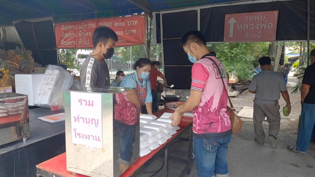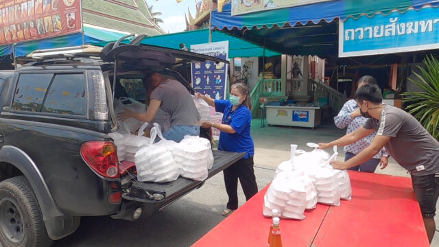 วัดเกจิดังนครชัยศรีเปิดโรงทานมอบข้าวกล่องให้บุคลากรทางการแพทย์