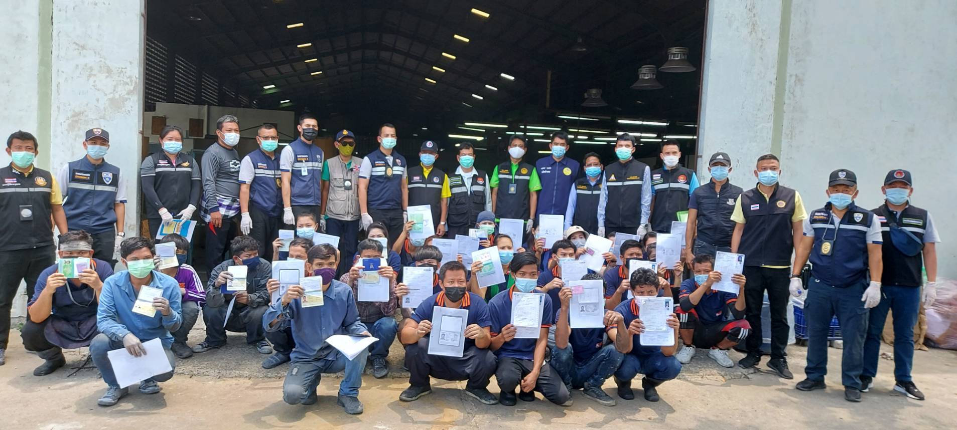 วันนี้ ( 12 พ.ค.64 ) เวลาประมาณ 10.30 น. ตม.จว.สมุทรสาคร นำโดย พ.ต.อ.ภาสกร รัตนปนัดดา ผกก.ตม.จว.สมุทรสาคร บูรณาการร่วมกับ จัดหางานจังหวัดสมุทรสาคร ฝ่ายปกครอง อำเภอเมืองสมุทรสาคร สวัสดิการและคุ้มครองแรงงานจังหวัดสมุทรสาคร ประกันสังคมจังหวัด กอ.รมน. สภ.กระทุ่มแบน และ ตำรวจสันติบาลจังหวัดสมุทรสาคร  ปิดล้อมตรวจค้น บริษัท เคนจิ อัลลอย จำกัด และ บริษัท ฟ่านด๋า ฟิตติ๊งส์ จำกัด ตั้งอยู่เลขที่ 88/2 ม.5 ต.คลองมะเดื่อ อ.กระทุ่มแบน จว.สมุทรสาคร ตรวจพบแรงงานทั้งสิ้น 91 ราย เป็น แรงงานสัญชาติไทย 41 ราย และสัญชาติเมียนมาร์ 43 ราย ลาว 7 ราย