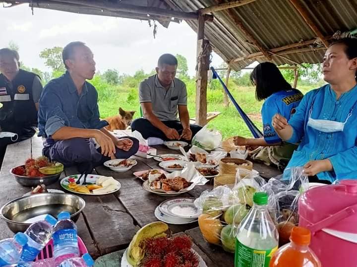จากนั้น เวลา 11.00 น. ได้ร่วมกิจกรรมเอามื้อสามัคคี ณ แปลงนางสาว ปิยะดา สุขชาติ และแปลงนางสาวสมลักษ์ ยะริรมย์ บ้านแก่งเจริญสุข หมู่ที่ 22 ตำบลดอนจิก อำเภอพิบูลมังสาหาร ซึ่งเป็นผู้เข้าร่วมโครงการพัฒนาพื้นที่ต้นแบบการพัฒนาคุณภาพชีวิตตามหลักทฤษฎีใหม่ ประยุกต์สู่ “โคก หนอง นา พช.” โอกาสนี้ คณะได้ตรวจเยี่ยมแปลงที่ขุดเสร็จ พร้อมปลูกต้นพะยูง และร่วมรับประทานอาหารกลางวันอย่างเป็นกันเอง ซึ่งชาวบ้านแก่งเจริญสุขทุกคน ได้ต่างก็ความสุขในการจัดกิจกรรมเอามื้อสามัคคี และการเข้าร่วมโครงการฯ เป็นอย่างมาก พร้อมขอบคุณรัฐบาลและกรมการพัฒนาชุมชน ที่นำโครงการฯ ที่ดีเช่นนี้ให้แก่พื้นที่ รวมถึงนักพัฒนาพื้นที่ต้นแบบ (นพต.) ที่ได้ประสานงาน คอยช่วยเหลือ และดูแลกิจกรรมเป็นอย่างดีอีกด้วย