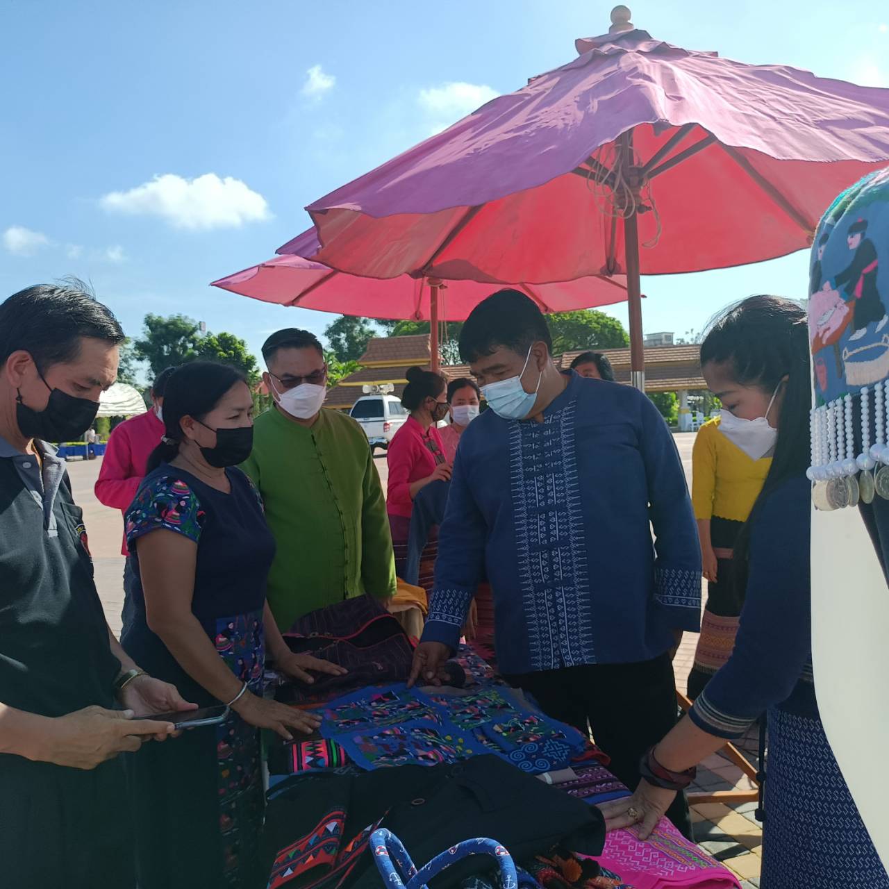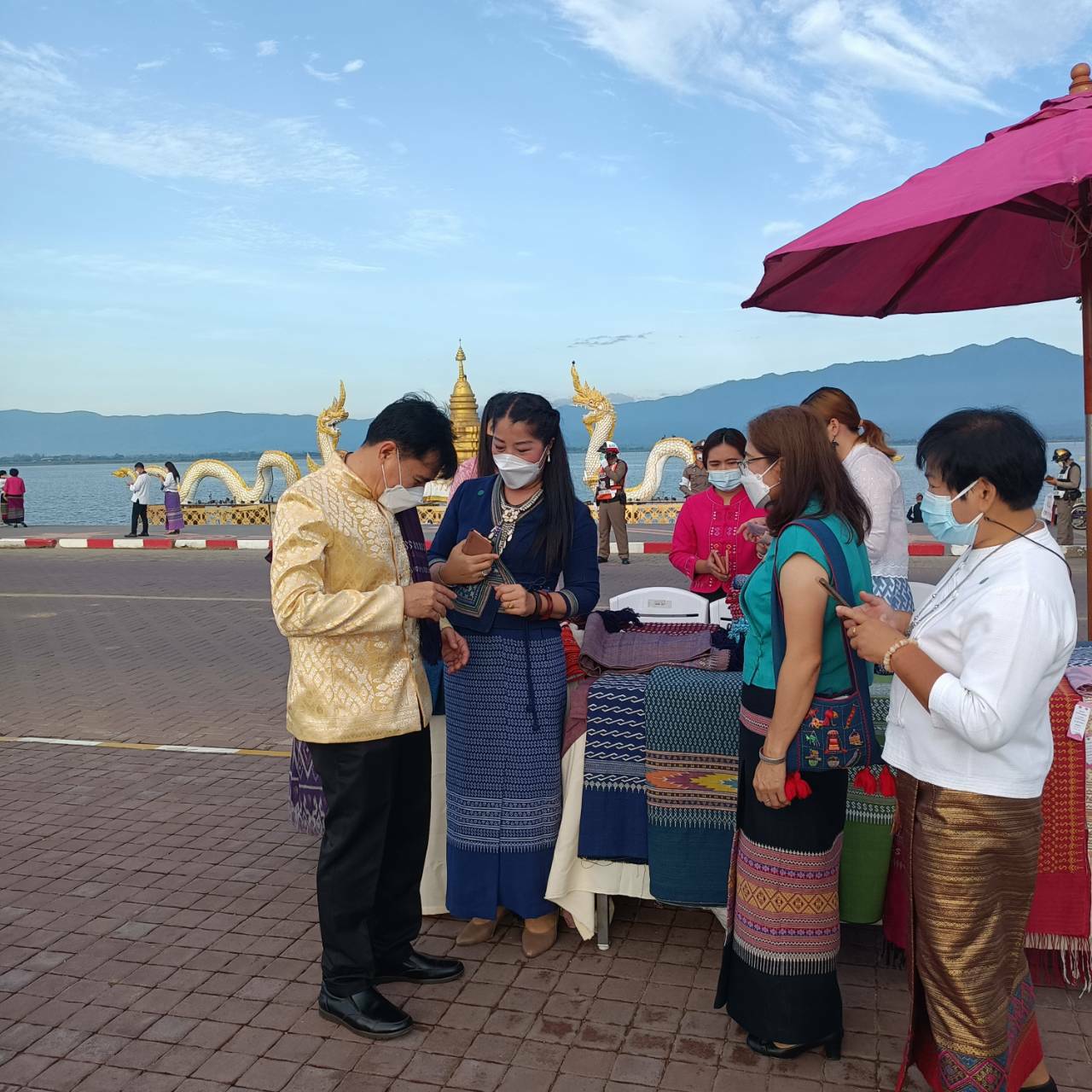วันพุธ ที่ 14 กรกฎาคม 2564 เวลา 07.00 น.นายโชคดี อมรวัฒน์ ผู้ว่าราชการจังหวัดพะเยา เป็นประธานจัดกิจกรรมเสริมสร้างคุณธรรมจริยธรรม และสร้างความผาสุกในองค์กร “ใส่บาตรวันพุธ สืบฮีต ตามฮอยล้านนา สามกษัตริย์ภูกามยาว” ในงานดังกล่าวสำนักงานพัฒนาชุมชนจังหวัดพะเยา ได้นำกลุ่มผู้ผลิตผู้ประกอบการโอทอป ร่วมจัดแสดงและจำหน่ายฯ ผลิตภัณฑ์ผ้าลายพระราชทาน “ผ้าลายขอเจ้าฟ้าสิริวัณณวรีฯ” จำนวน 3 กลุ่ม เพื่อเพิ่มช่องทางการตลาดรวมถึงเป็นการประชาสัมพันธ์ผลิตภัณฑ์ที่เกิดจากการนำผ้าลายพระราชทานฯ ไปแปรรูปเป็นผลิตภัณฑ์ต่างๆ เช่น กระเป๋า เสื้อผ้า ย่าม ฯลฯ และมียอดจำหน่าย