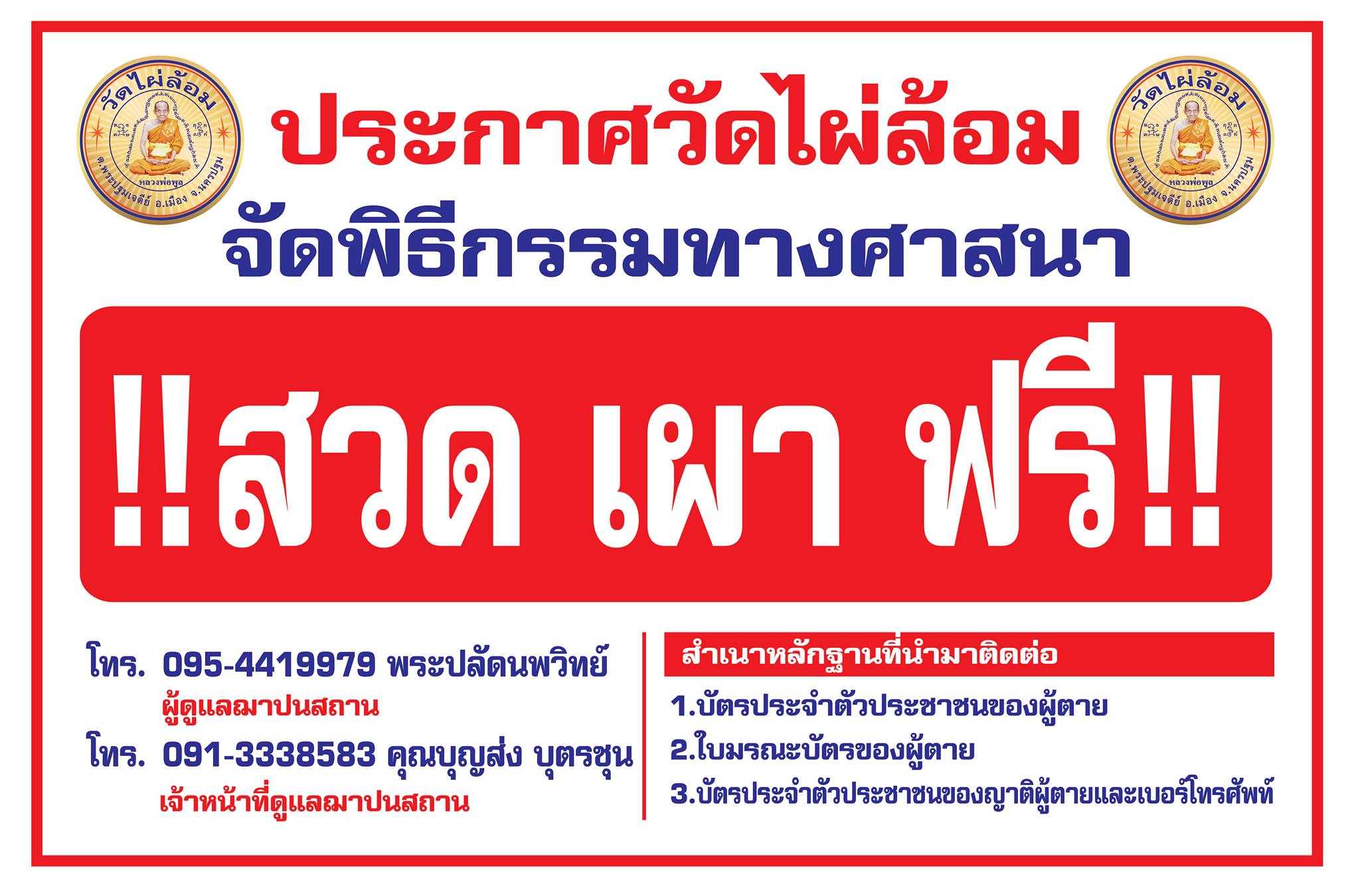 นครปฐม วัดไผ่ล้อมช่วยทั้งคนเป็นและคนตาย