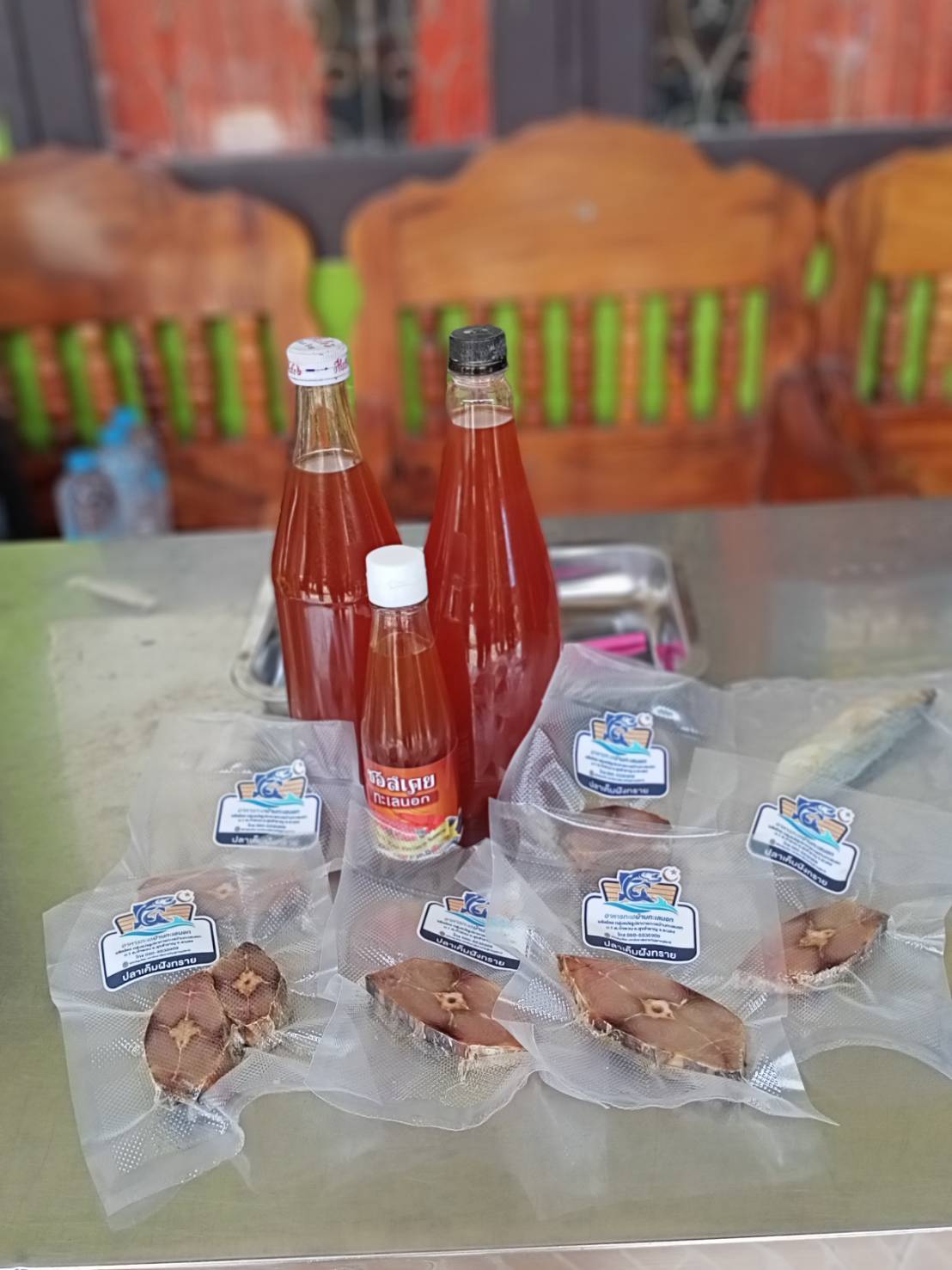 2. กลุ่มผลิตกุ้งเคยบ้านนาพรุ หมู่ที่ 2 บ้านนาพรุ ตำบลนาคา อำเภอสุขสำราญ จังหวัดระนอง เดิมผลิตภัณฑ์ของกลุ่มคือ กะปิ ได้รับการพัฒนาผลิตภัณฑ์เพิ่มเป็นผลิตภัณฑ์ กะปิผงบ้านนาพรุ เพื่อเพิ่มมูลค่าผลิตภัณฑ์ โดยการนำกะปิตากจนแห้งและผ่านกระบวนการอบและปั่นจนเป็นผง 3. กลุ่มแปรรูปอาหารทะเลบ้านทะเลนอก หมู่ที่ 1 ตำบลกำพวน อำเภอสุขสำราญ จังหวัดระนอง เดิมผลิตภัณฑ์ของกลุ่มคือ น้ำพริกกะลา ได้รับการพัฒนาเพิ่มผลิตภัณฑ์ ซอสเคยทะเลนอก โดยการนำกุ้งเคยผ่านกระบวนการหมักและกรองน้ำที่ได้จากการหมักเป็นซอสเคยทะเลนอก