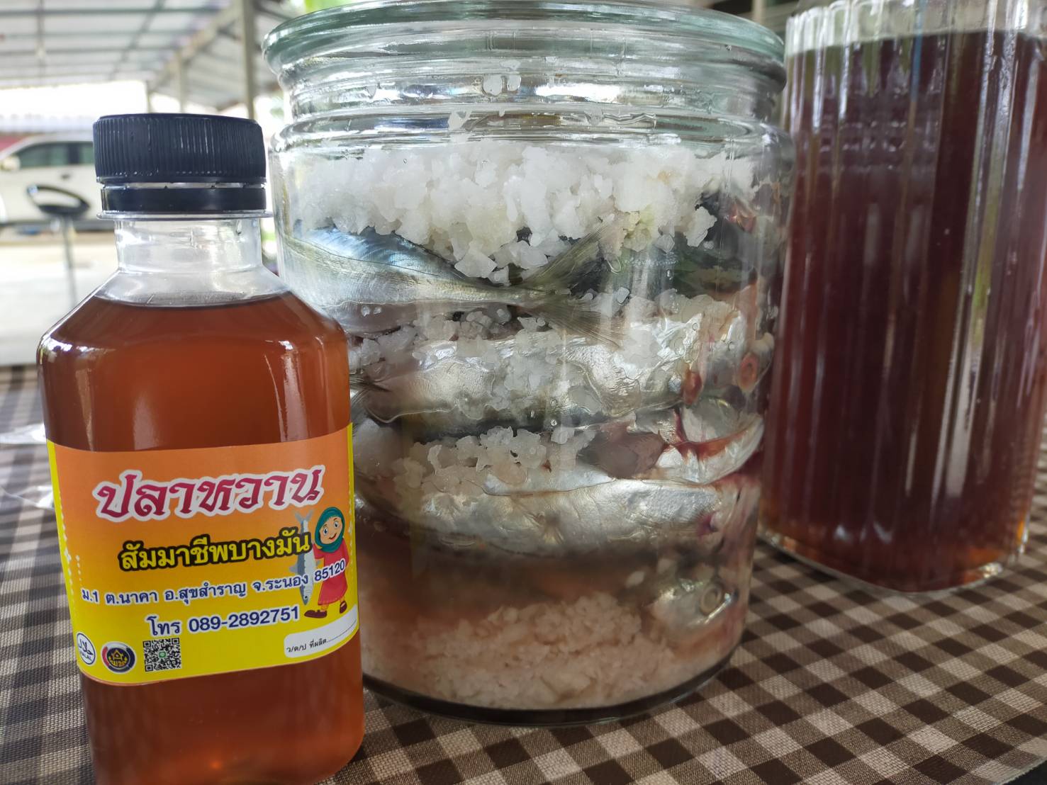 1. กลุ่มสัมมาชีพบางมัน หมู่ที่ 1 บ้านบางมัน ตำบลนาคา อำเภอสุขสำราญ จังหวัดระนอง เดิมผลิตภัณฑ์ของกลุ่มคือ ปลาหวาน ได้รับการพัฒนาผลิตภัณฑ์เพิ่มเป็นผลิตภัณฑ์ น้ำปลาจากปลาหลังเขียว โดยใช้ส่วนที่ทิ้งหรือเศษเหลือจากการทำปลาหวานเช่น ส่วนหัวและไส้ปลาหลังเขียวผ่านกระบวนการหมักและเคี่ยวจนได้น้ำใสเป็นน้ำปลาบรรจุขวด
