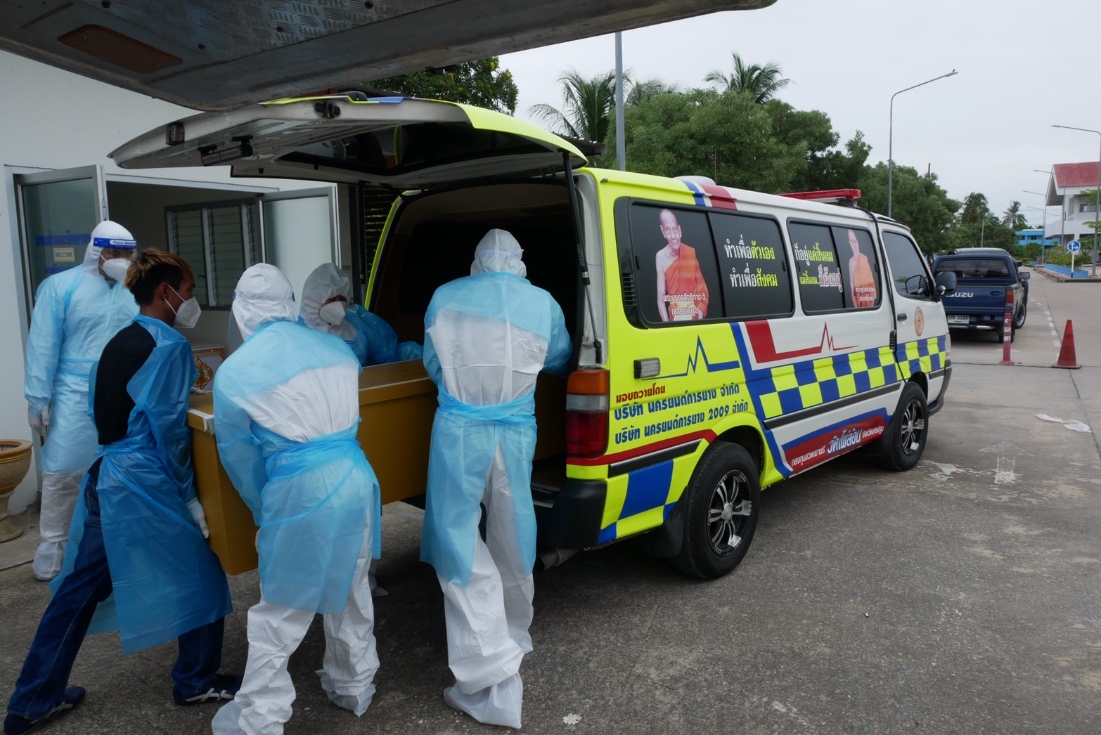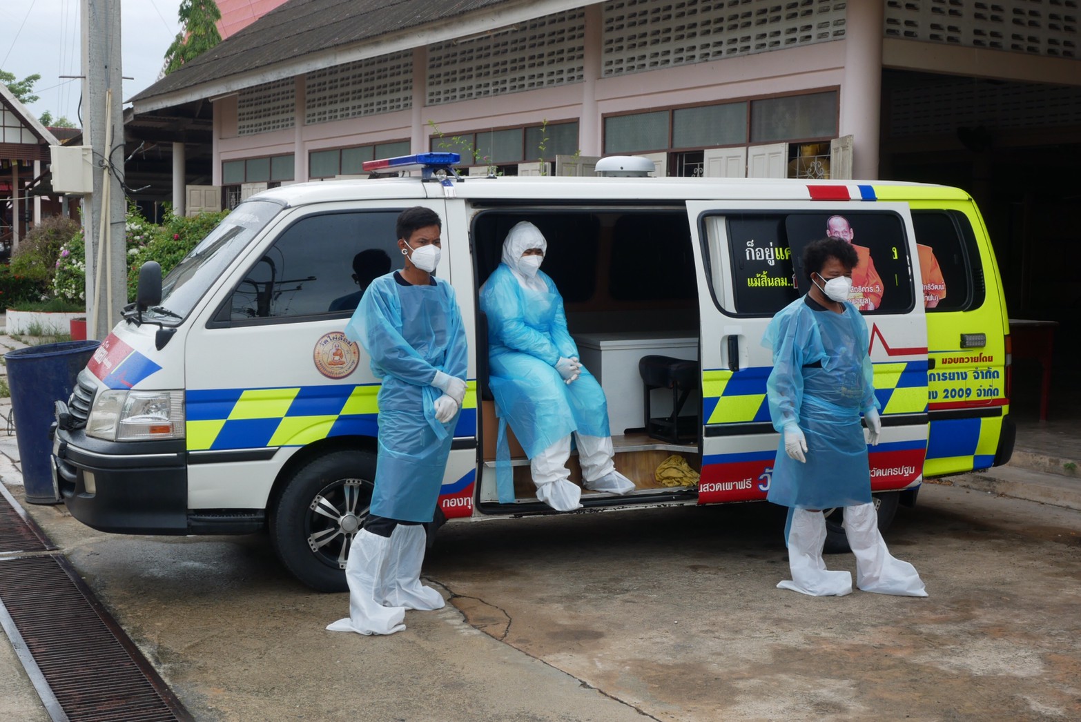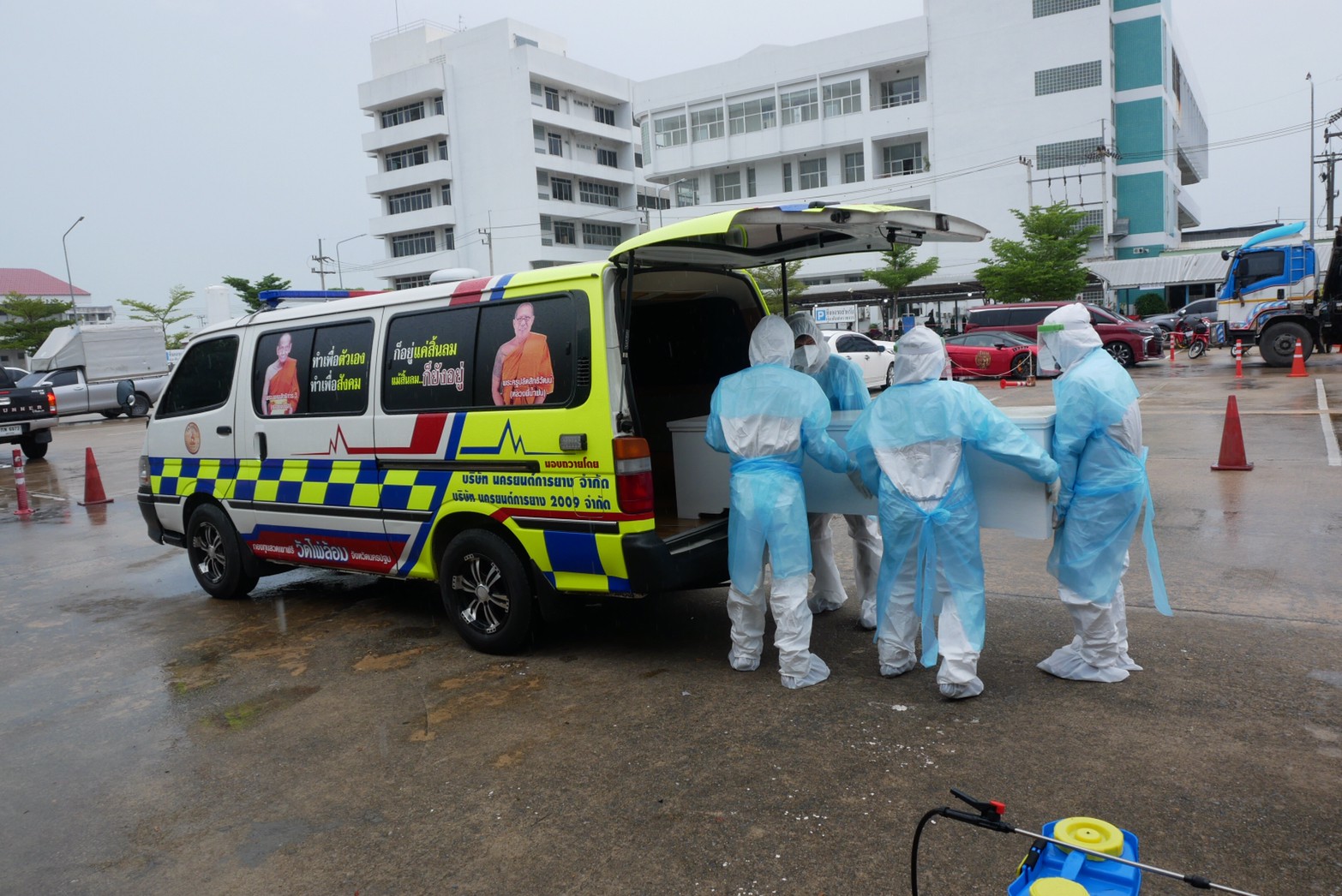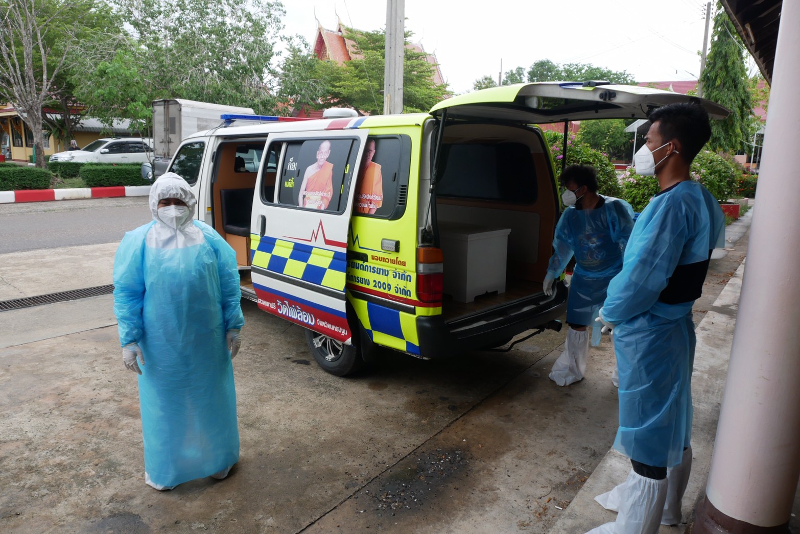 นครปฐม วัดไผ่ล้อม ส่งรถตู้กองทุนสวดเผาฟรี ช่วยญาติโยมขนศพโควิด-19วันเดียว2รายซ้อน