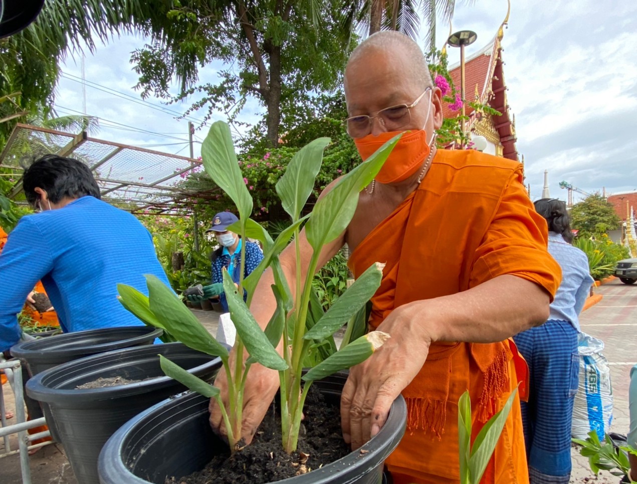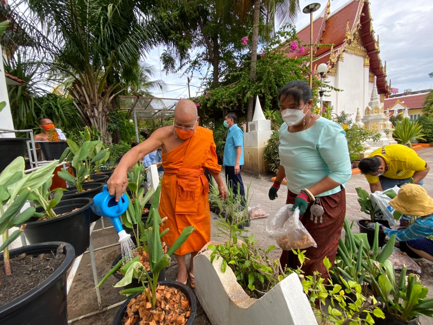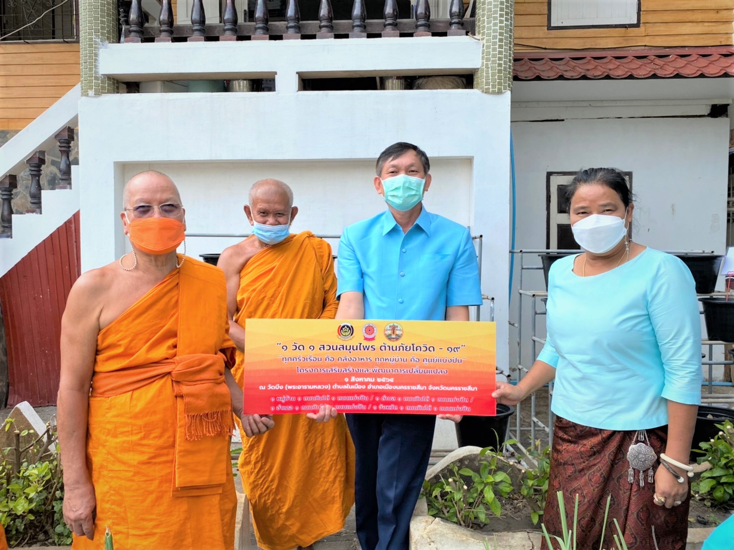 วันอาทิตย์ที่ 1 สิงหาคม พ.ศ. 2564 เวลา 16.00 น. นางอรุณรัตน์ ชิงชนะ พัฒนาการจังหวัดนครราชสีมา พร้อมด้วยนายสิทธิชัย พรทิพย์พิทักษ์ ผู้อำนวยการกลุ่มงานยุทธศาสตร์การพัฒนาชุมชน นางจำเรียง มณีพินิจ ผู้อำนวยการกลุ่มงานส่งเสริมการพัฒนาชุมชน นางสาวธัญลักษณ์ ชันไธสง ผู้อำนวยการกลุ่มงานประสานและสนับสนุนการบริหารงานพัฒนาชุมชน และนักวิชาการ สำนักงานพัฒนาชุมชนจังหวัดนครราชสีมา ร่วมทำกิจกรรมศูนย์แบ่งปันขยายผลการปลูกพืชผักสวนครัว และพืชสมุนไพรไทย “1 วัด 1 สวนสมุนไพร ต้านภัยโควิด – 19” เพื่อเป็นคลังสมุนไพรแบบพึ่งพาตนเอง โดยใช้พื้นที่วัด เป็นพื้นที่แบ่งปันให้กับชุมชนสำหรับนำมาบริโภค และทำเป็นยาสมุนไพร เสริมหรือทดแทนการใช้ยาแผนปัจจุบันในการต้านเชื้อโควิด-19
