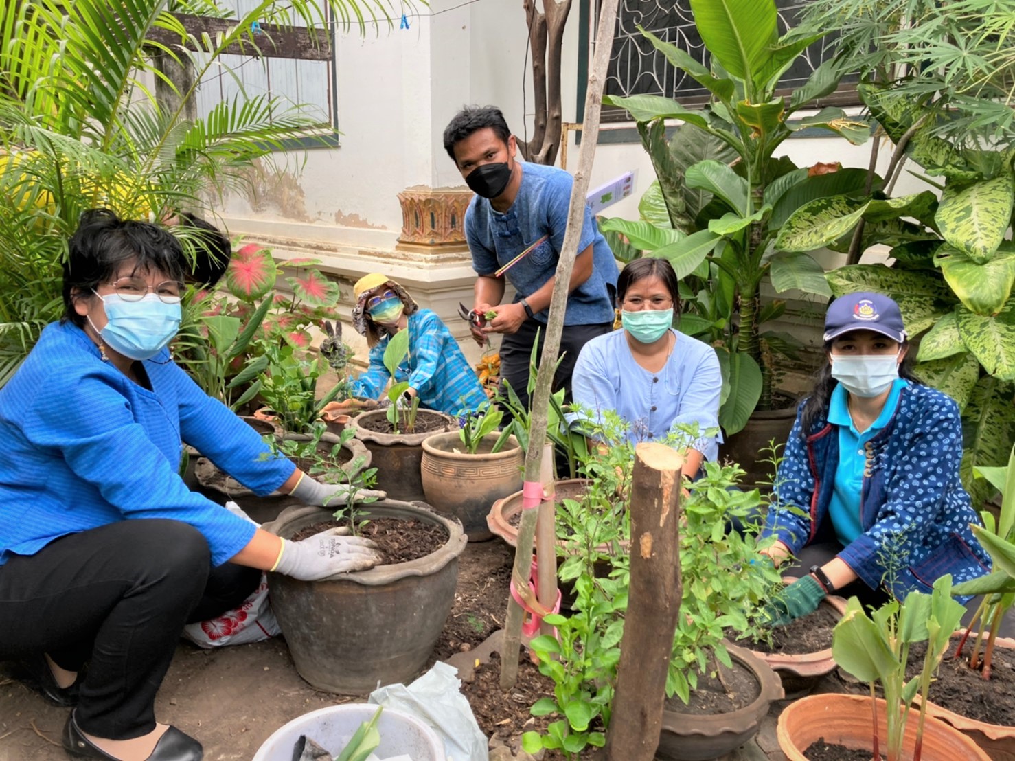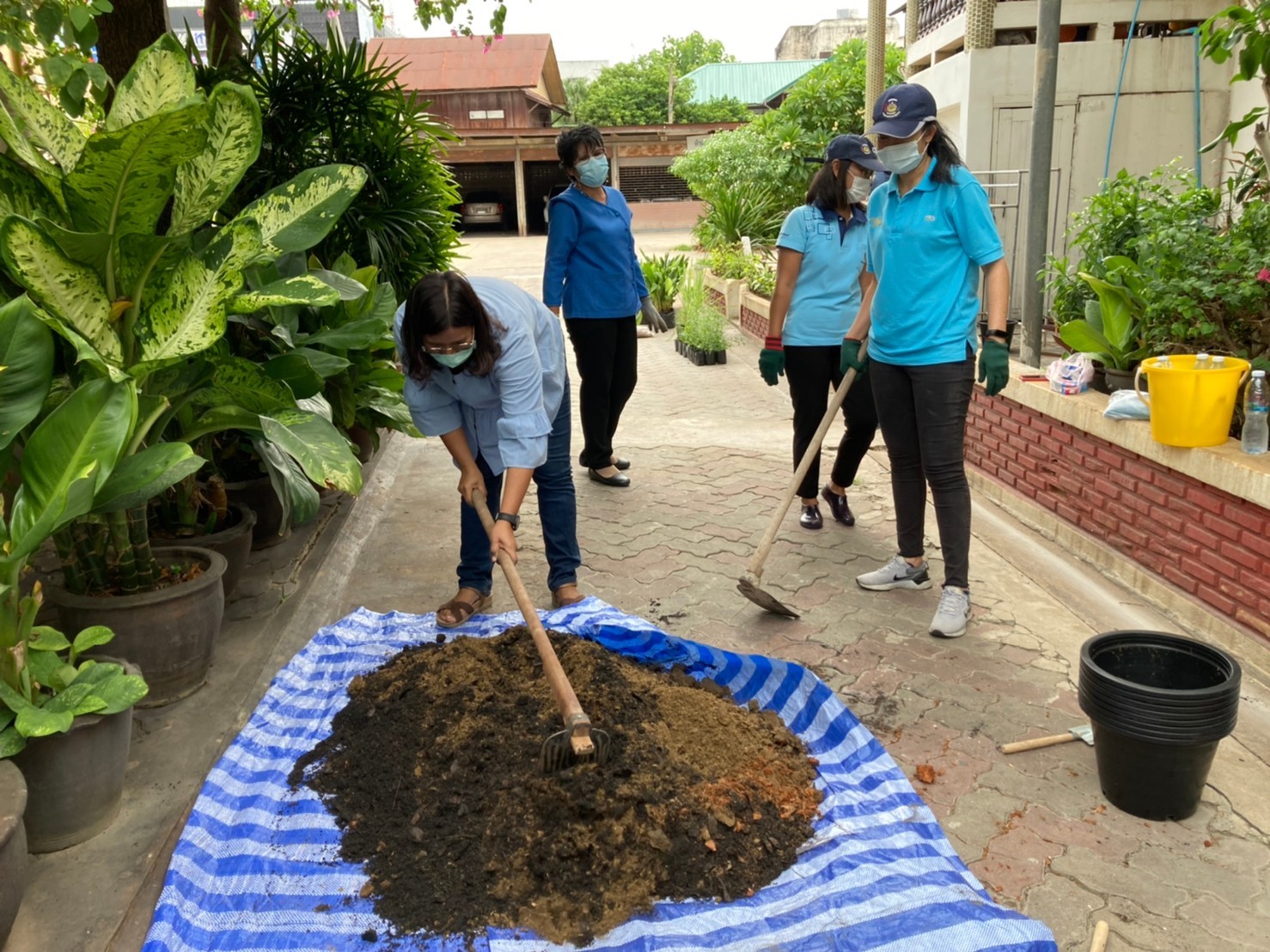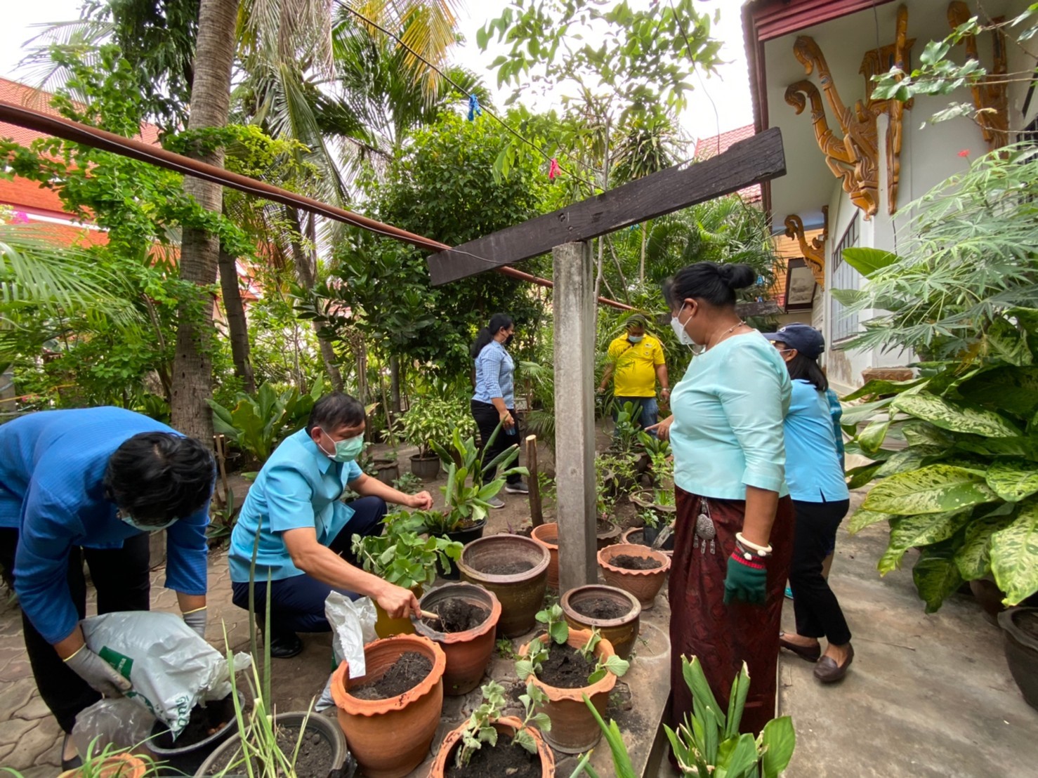 วันอาทิตย์ที่ 1 สิงหาคม พ.ศ. 2564 เวลา 16.00 น. นางอรุณรัตน์ ชิงชนะ พัฒนาการจังหวัดนครราชสีมา พร้อมด้วยนายสิทธิชัย พรทิพย์พิทักษ์ ผู้อำนวยการกลุ่มงานยุทธศาสตร์การพัฒนาชุมชน นางจำเรียง มณีพินิจ ผู้อำนวยการกลุ่มงานส่งเสริมการพัฒนาชุมชน นางสาวธัญลักษณ์ ชันไธสง ผู้อำนวยการกลุ่มงานประสานและสนับสนุนการบริหารงานพัฒนาชุมชน และนักวิชาการ สำนักงานพัฒนาชุมชนจังหวัดนครราชสีมา ร่วมทำกิจกรรมศูนย์แบ่งปันขยายผลการปลูกพืชผักสวนครัว และพืชสมุนไพรไทย “1 วัด 1 สวนสมุนไพร ต้านภัยโควิด – 19” เพื่อเป็นคลังสมุนไพรแบบพึ่งพาตนเอง โดยใช้พื้นที่วัด เป็นพื้นที่แบ่งปันให้กับชุมชนสำหรับนำมาบริโภค และทำเป็นยาสมุนไพร เสริมหรือทดแทนการใช้ยาแผนปัจจุบันในการต้านเชื้อโควิด-19