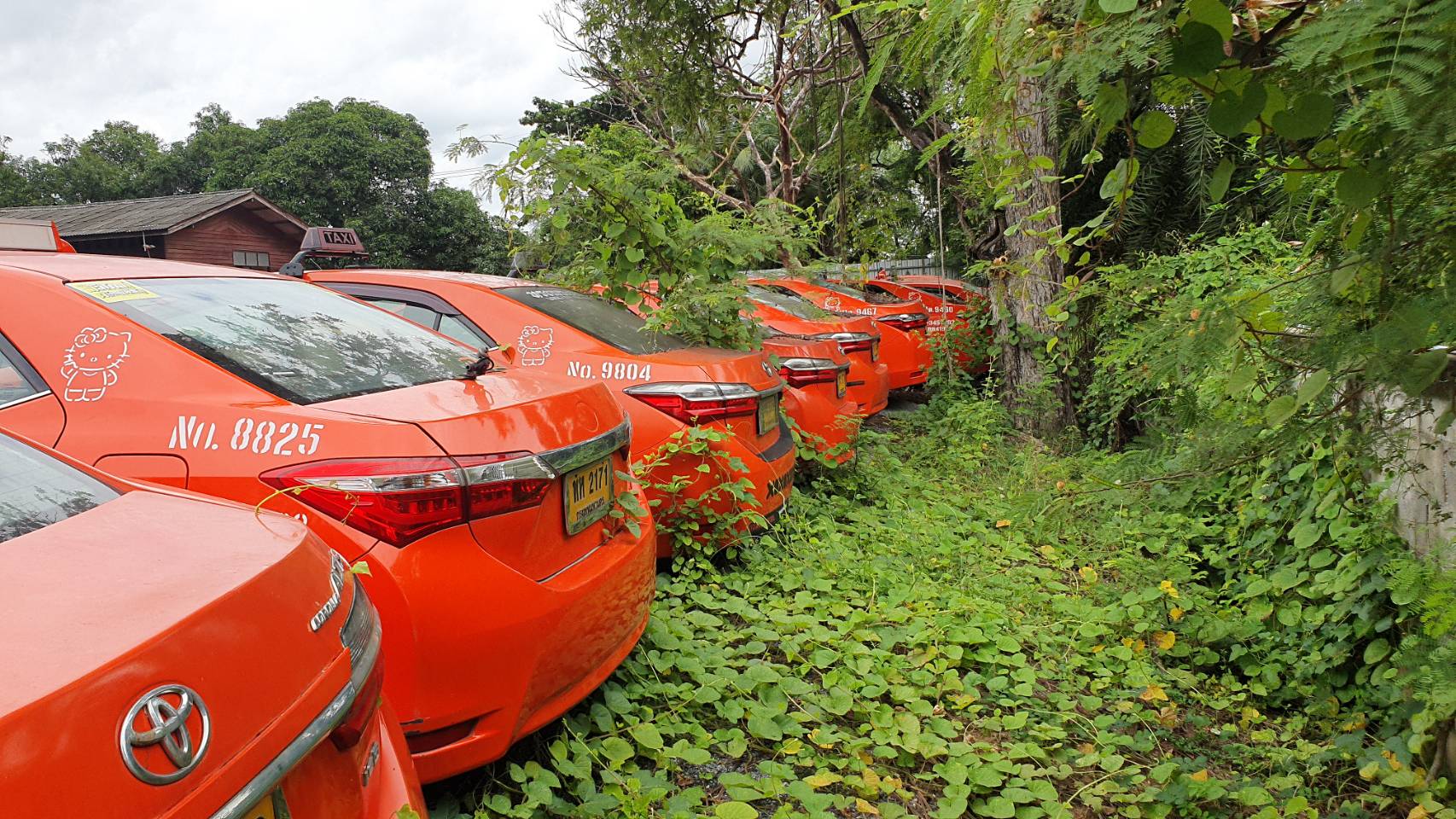 เมื่อเวลา11.00น.ของวันที่ 3 สิงหาคม 2564 ผู้สื่อข่าวเดินทางไปที่สหกรณ์บวรแท็กซี่ ถนนพุทธมณฑลสาย 4 ตัดใหม่ ต.สวนหลวง อ.กระทุ่มแบน จ.สมุทรสาครพบมีรถแท็กซี่จอดทิ้งไว้บริเวณด้านหลังอู่ประมาณ200คัน โดยบางคันมีเถาวัลย์และหญ้าปกคลุมตัวรถ จากการสอบถามนายพบนายฐาปกรณ์ อัศวเลิศกุล อายุ 54 ปี ที่ปรึกษาสหกรณ์บวรแท็กซี่ และราชพฤกษ์แท็กซี่ เปิดเผยว่ารถที่นำมาเก็บนั้นมีประมาณเป็นพันๆคันเป็นเวลามาเกือบ2ปีแล้วโดยไม่ได้เก็บจุดนี้จุดเดียว เก็บหลายจุดตามซอกซอยที่มีที่เก็บเราเก็บหมดทุกจุด ผลกระทบของโควิด-19 นี่แรงมากตั้งแต่เดือนกุมภาพันธ์ ปีที่แล้ว จนจะครบ2ปีแล้ว ขอให้ภาครัฐลงมาช่วยด้วย การเมืองเราไม่ยุ่งมุ่งปากท้องผู้ขับขี่รถแท็กซี่ และขอให้ไฟแนนซ์ ผู้บริหารโตโยต้าลิสซิ่งรัชธานีลงมาดูด้วยว่าแท็กซี่มันไปไม่รอดแล้ว ขออย่าคิดเบี้ยปรับเลย ขอให้ปรับลงมาเท่ากับเบี้ยรถบ้าน ต้องขอความเห็นใจจากผู้บริหารโตโยต้าลิสซิ่งด้วย เพราะว่าผู้ประกอบการไปไม่รอดแล้วเพราะว่าสมาชิกได้มาทิ้งรถไว้ให้กับทางสหกรณ์บวรแท็กซี่ และสหกรณ์ราชพฤกษ์แท็กซี่ ซึ่งคนขับแท็กซี่ได้ไปทำไร่ทำนาตามบ้านนอก ที่ขับอยู่ก็ขับไปหาเงินเลี้ยงครอบครัวไปวันๆหนึ่งปัจจุบันนี้แท็กซี่ไปไม่รอด