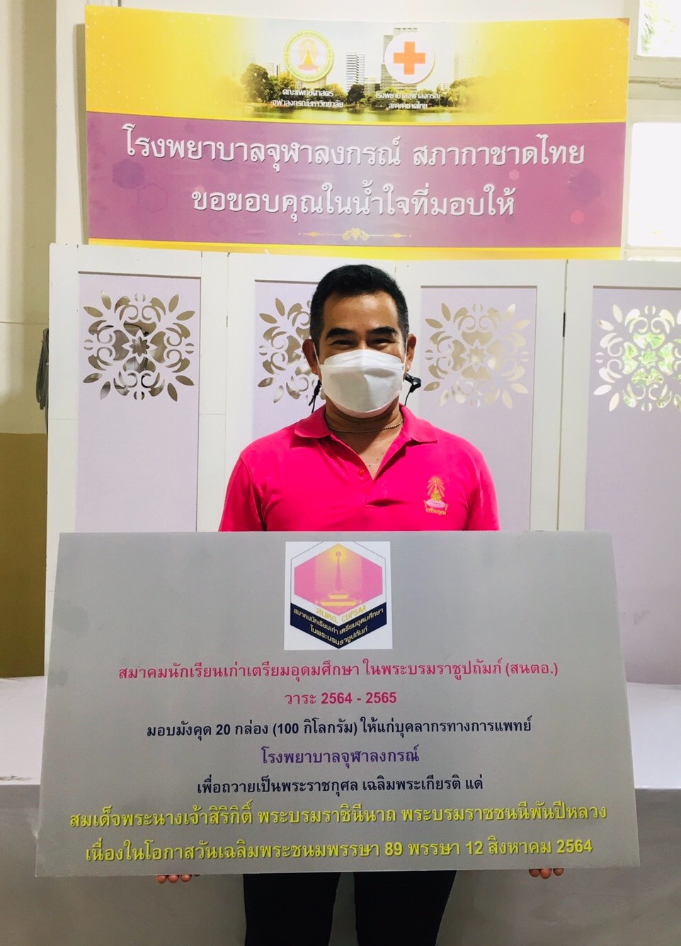 กิจกรรมประกอบด้วย การมอบมังคุด 20 กล่อง (100 กิโลกรัม) จากเกษตรกรจังหวัดนครศรีธรรมราช เป็นการช่วยเหลือกลุ่มเกษตรกรสวนมังคุดและสนับสนุนให้กำลังใจแก่คณะแพทย์พยาบาลและบุคลาการทางการแพทย์ ที่กำลังปฏิบัตหน้าที่อยู่ที่โรงพยาบาลจุฬาลงกรณ์ โดยการมอบอาหารให้แก่บุคลากรทางการแพทย์ โรงพยาบาลรามาธิบดี จำนวน 100กล่อง และ โรงพยาบาลศิริราช จำนวน 100 กล่อง เพื่อ ร่วมโครงการ “ร่วมปันน้ำใจต้านภัยโควิด-19” ด้วยสำนึกในพระมหากรุณาธิคุณเป็นล้นพ้นอันหาที่สุดมิได้ ขอพระองค์ทรงพระเจริญ .