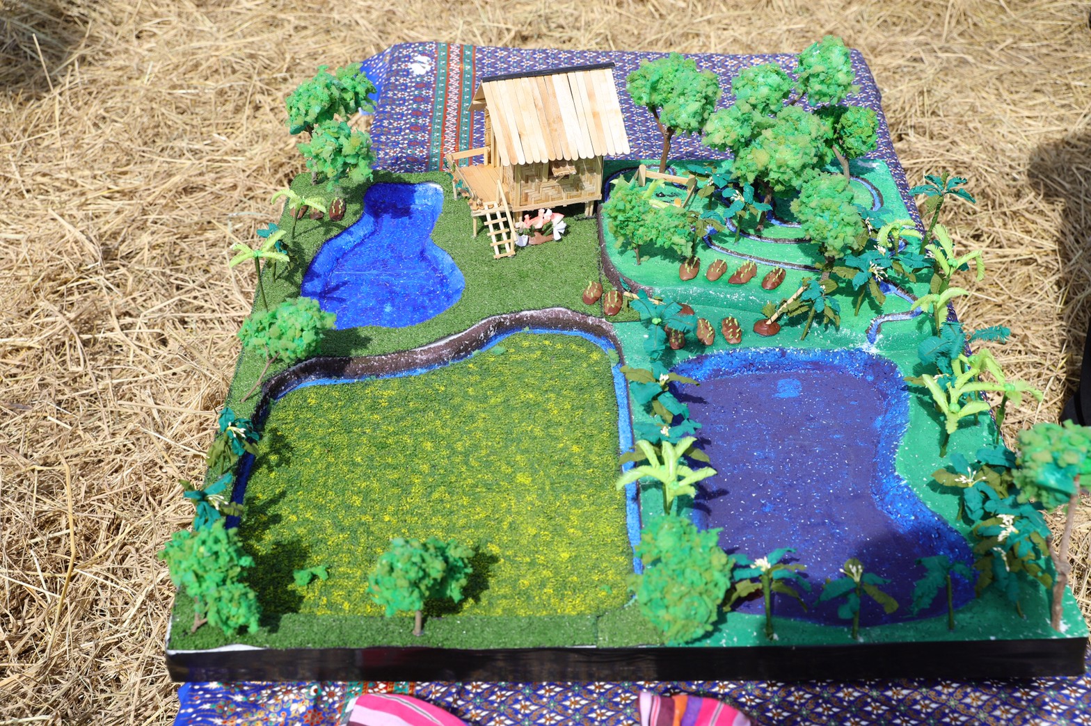 นอกจากนั้น ยังมีการปลูกต้นไม้ อาทิ ต้นกล้วย ต้นมะม่วง ฯลฯ และพืชผักสวนครัว อาทิ พริก ตะไคร้ ผักชี มะนาว ต้นชะพลู ซึ่งมีสรรพคุณและประโยชน์อย่างมากมาย รวมถึง การเลี้ยงปลาตะเพียนในบ่อนํ้า เพื่อสร้างรายได้ให้แก่ครัวเรือน เพิ่มมากขึ้น และสามารถนำไปต่อยอดในการส่งเสริมความรู้และอาชีพ ให้แก่คนในชุมชนได้อีกด้วย จนนำไปสู่การพัฒนาเป็นผลิตภัณฑ์อาหาร นั่นคือ “เมี่ยงคำ” ซึ่งมาจากผลผลิตในแปลงที่เพาะปลูก และสูตรนี้ยังได้บรรจุลงในรายการ 108 อาชีพ ตามหลักปรัชญาของเศรษฐกิจพอเพียง เป็นการช่วยเสริมทักษะอาชีพ ลดรายจ่าย เพิ่มรายได้ ให้กับพี่น้องประชาชน
