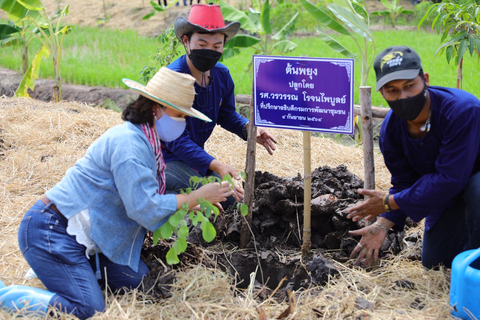 นายสุทธิพงษ์ จุลเจริญ อธิบดีกรมการพัฒนาชุมชน พร้อมด้วย รศ.วรวรรณ โรจนไพบูลย์ ผศ.พิเชฐ โสวิทยสกุล ที่ปรึกษาอธิบดีกรมการพัฒนาชุมชน นางวรรณา ลิ่มพาณิชย์ นักวิชาการพัฒนาชุมชนเชี่ยวชาญ ลงพื้นที่ติดตามให้กำลังใจ ครัวเรือนต้นแบบการพัฒนาคุณภาพชีวิต (Household Lab Model for quality of life : HLM) ระดับครัวเรือน แปลงโคก หนอง นา ของนางระพิน เพ็ญสุวรรณ พื้นที่ 3 ไร่ บ้านสำพะเนียง หมู่ที่ 5 ตำบลสำพะเนียง อำเภอบ้านแพรก จังหวัดพระนครศรีอยุธยา และนายสุนทร แววมะบุตร ผู้นำต้นแบบและประธานเครือข่ายโคก หนอง นา โดยมี นายสุระบัณฑิต กันยานะ นายอำเภอบ้านแพรก นายสมจิตร แย้มเยื้อน นายกเทศมนตรีตำบลบ้านแพรก นายบรรหาญ เนาวรัตน์ นายกองค์การบริหารส่วนตำบลโก่งธนู นายกิจจา ทองแดง พัฒนาการจังหวัดพระนครศรีอยุธยา เจ้าหน้าที่กรมการพัฒนาชุมชน นักพัฒนาพื้นที่ต้นแบบ (นพต.) เครือข่ายโคก หนอง นา อำเภอบ้านแพรก ให้การต้อนรับ