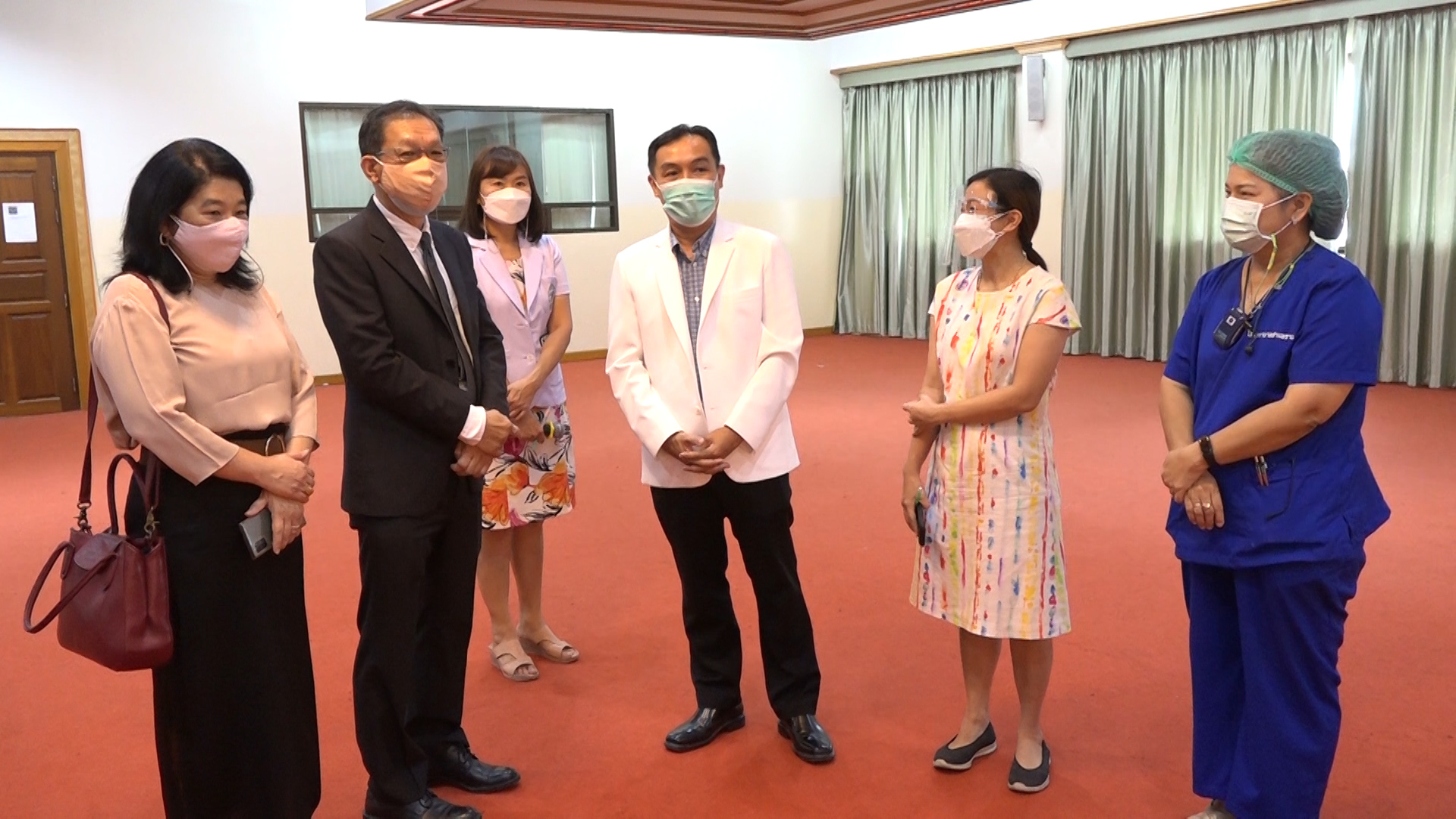 นายแพทย์ทินกร ชื่นชม รองนายแพทย์สาธารณสุขจังหวัดนครปฐม ผู้อำนวยการโรงพยาบาลสามพราน พร้อมด้วย แพทย์หญิงอัญชนา มณีงาม รองผู้อำนวยการโรงพยาบาลสามพราน นางพัชรี เกสรบุญนาค รองผู้อำนวยการโรงพยาบาลสามพราน เภสัชกรหญิงวาสนา คำเซ่ง และเจ้าหน้าที่ รับ มอบอุปกรณ์ทางการแพทย์สู้ภัยโควิด-19 รวมมูลค่า 1 ล้านบาท จาก ดร.สุรชัย รติทอง และ ดร.ฮุย คิม บู คณะผู้บริหารบริษัทเบสท์พลาสติกเทคโนโลยีจำกัด