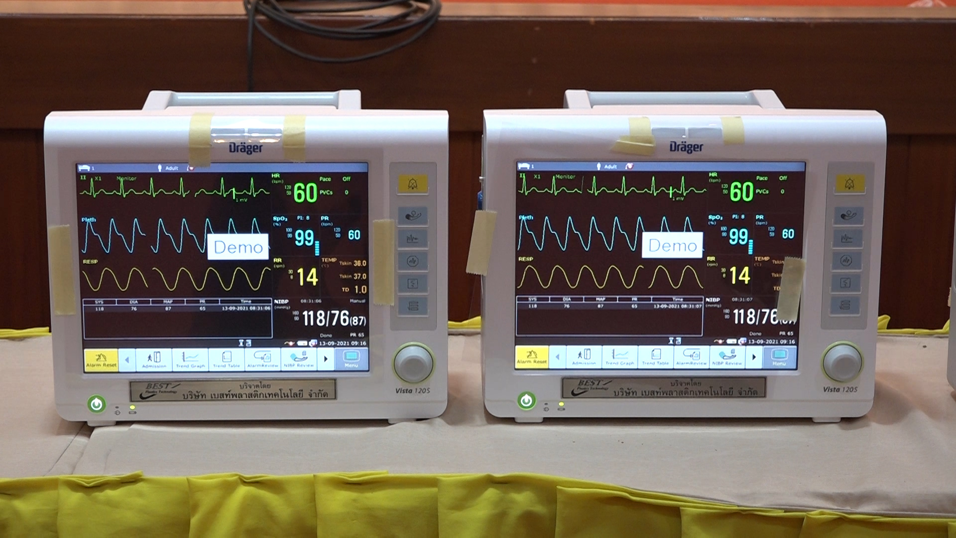 เครื่องเฝ้าและติดตามการทำงานของหัวใจพร้อมอุปกรณ์โดยตัวเครื่องประกอบด้วย ภาควัดคลื่นไฟฟ้า(ECG) ภาควัดอัตราการหายใจ (Respiration) ภาควัดความอิ่มตัวของออกซิเจนในเลือด (SpO2) และภาควัดความดันโลหิตแบบภายนอก (NIBP) เป็นเครื่องเฝ้าและติดตามการทำงานของสัญญาณชีพสำหรับผู้ป่วยภาวะวิกฤต เฝ้าติดตามและวัดความดันโลหิตแบบภายนอก วัดอัตราการเต้นของหัวใจ อัตราการหายใจ ปริมาณความอิ่มตัวของออกซิเจนในเลือด เพื่อช่วยในการรักษาผู้ป่วยและสะดวกในการรักษาลดกำลังของบุคลากรทางการแพทย์ในการรักษาผู้ป่วยโควิด-19ที่กำลังระบาดอยู่ในขณะนี้ได้เป็นอย่างดี อีกด้วย