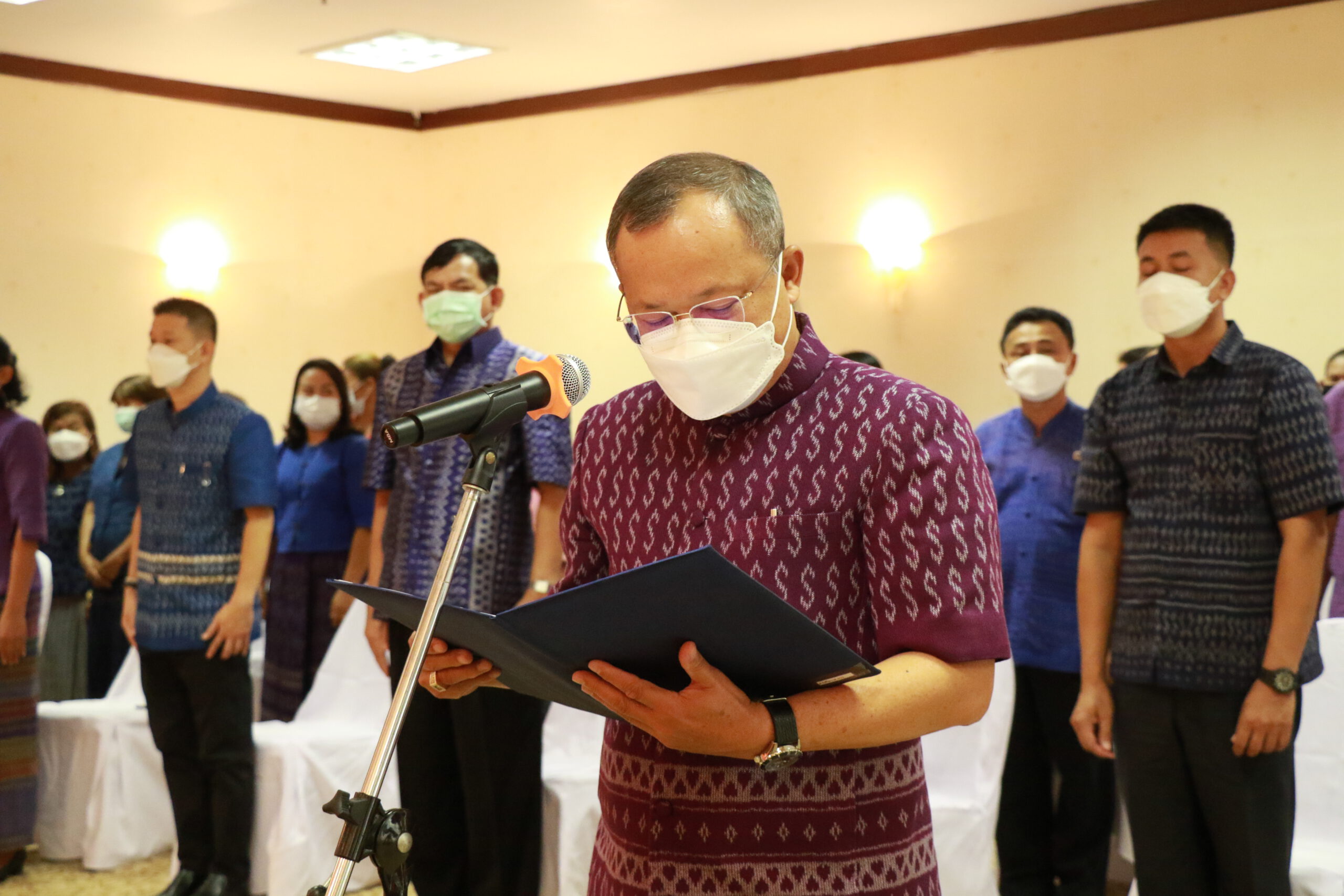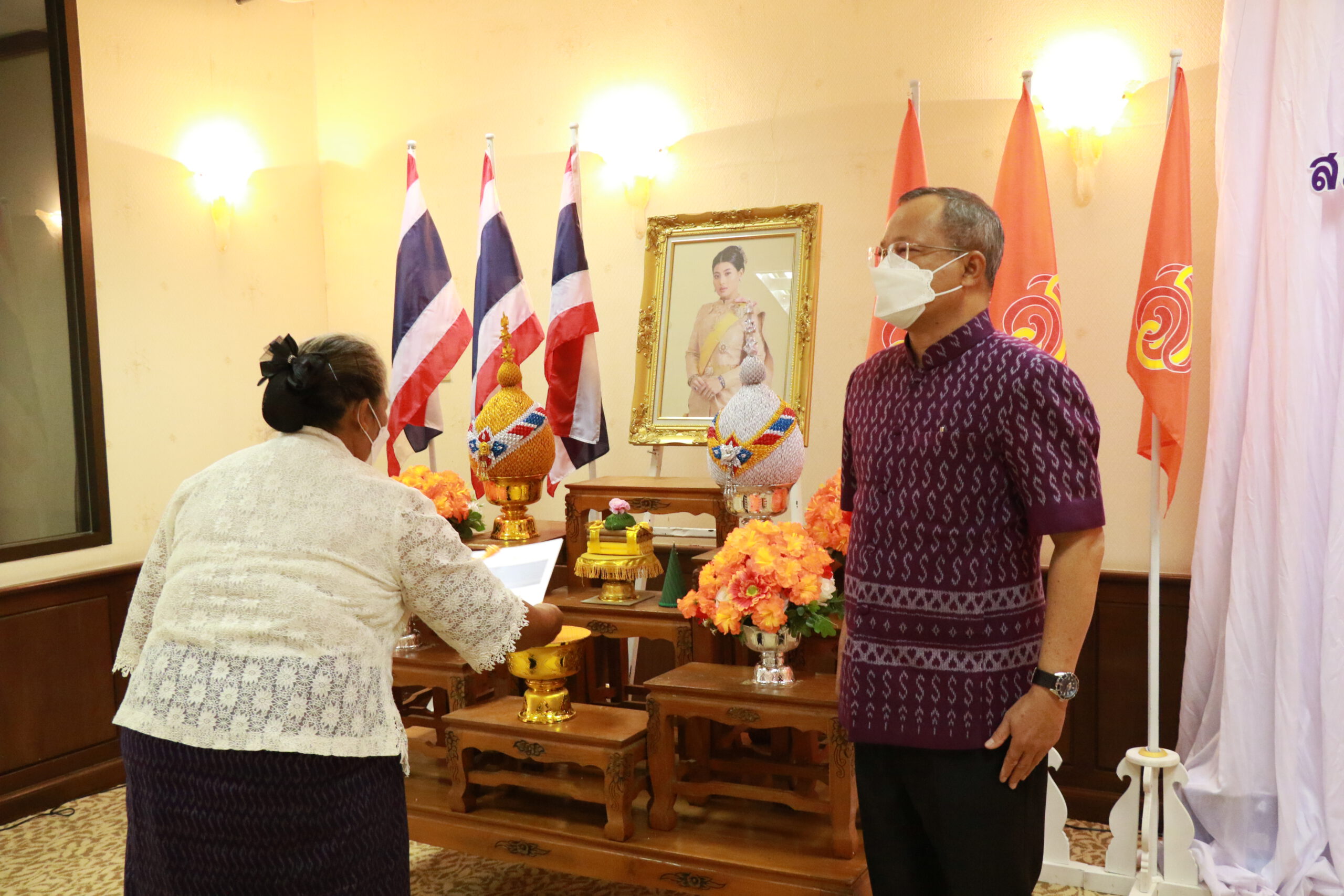 จังหวัดอำนาจเจริญ จัดพิธีมอบแบบผ้าบาติกลายพระราชทาน สมเด็จพระเจ้าลูกเธอ เจ้าฟ้าสิริวัณณวรี นารีรัตนราชกัญญา 3 ลาย “ปาเต๊ะร่วมใจเทิดไทยเจ้าหญิง ท้องทะเลไทย และป่าแดนใต้”