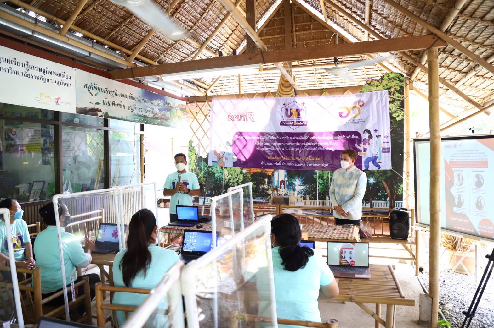 ในวันจันทร์ที่ 11 ตุลาคม 2564 มทร.รัตนโกสินทร์ นำโดย ผศ.ศิวะ วสุนธราภิวัฒก์ อธิการบดี มอบหมาย ผศ.ดร.อาคีรา ราชเวียง รองอธิการบดี เป็นประธานเปิดโครงการพัฒนายกระดับสินค้าท้องถิ่น การสร้างแบรนด์สินค้าใหม่ในท้องถิ่นสู่แบรนด์ระดับพรีเมียม(โดยใช้ทรัพยากรทางการเกษตรมาพัฒนาผลิตภัณฑ์สู่ตลาดบริโภค) หลักสูตรการพัฒนาบรรจุภัณฑ์และรูปแบบการขนส่งโลจิสติก ของผลิตภัณฑ์ไอติมบ้านศาลาดินโฮมเมด ตำบลมหาสวัสดิ์ อำเภอพุทธมณฑล จังหวัดนครปฐม