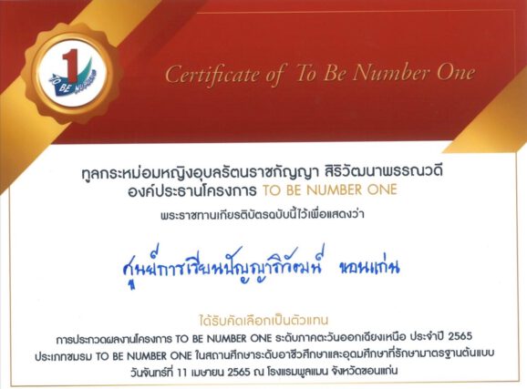ที่ ร.ร.พูลแมน อ.เมืองจ.ขอนแก่น นางสาวอภิญญา โชคนัก ผู้จัดการศูนย์การเรียนปัญญาภิวัฒน์ ขอนแก่น ได้นำตัวแทนนักเรียนเข้าร่วมประกวดผลงานโครงการ TO BE NUMBER ONE ระดับภาคตะวันออกเฉียงเหนือ ประจำปี 2565 ประเภทชมรมในสถานศึกษาระดับอาชีวศึกษาและอุดมศึกษาที่รักษามาตรฐานต้นแบบ โดยได้รับพระราชทานเกียรติบัตรเพื่อแสดงว่า ศูนย์การเรียนปัญญาภิวัฒน์ ขอนแก่น ได้รับคัดเลือกเป็นตัวแทน ต้นแบบระดับเงิน จังหวัดขอนแก่น ระดับภาคตะวันออกเฉียงเหนือ เข้าแข่งขันระดับประเทศ ที่อิมแพ็ค อารีน่า เมืองทองธานี โครงการใน ทูลกระหม่อมหญิงอุบลรัตนราชกัญญา สิริวัฒนาพรรณวดี องค์ประธานโครงการ TO BE NUMBER ONE ลำดับต่อไป