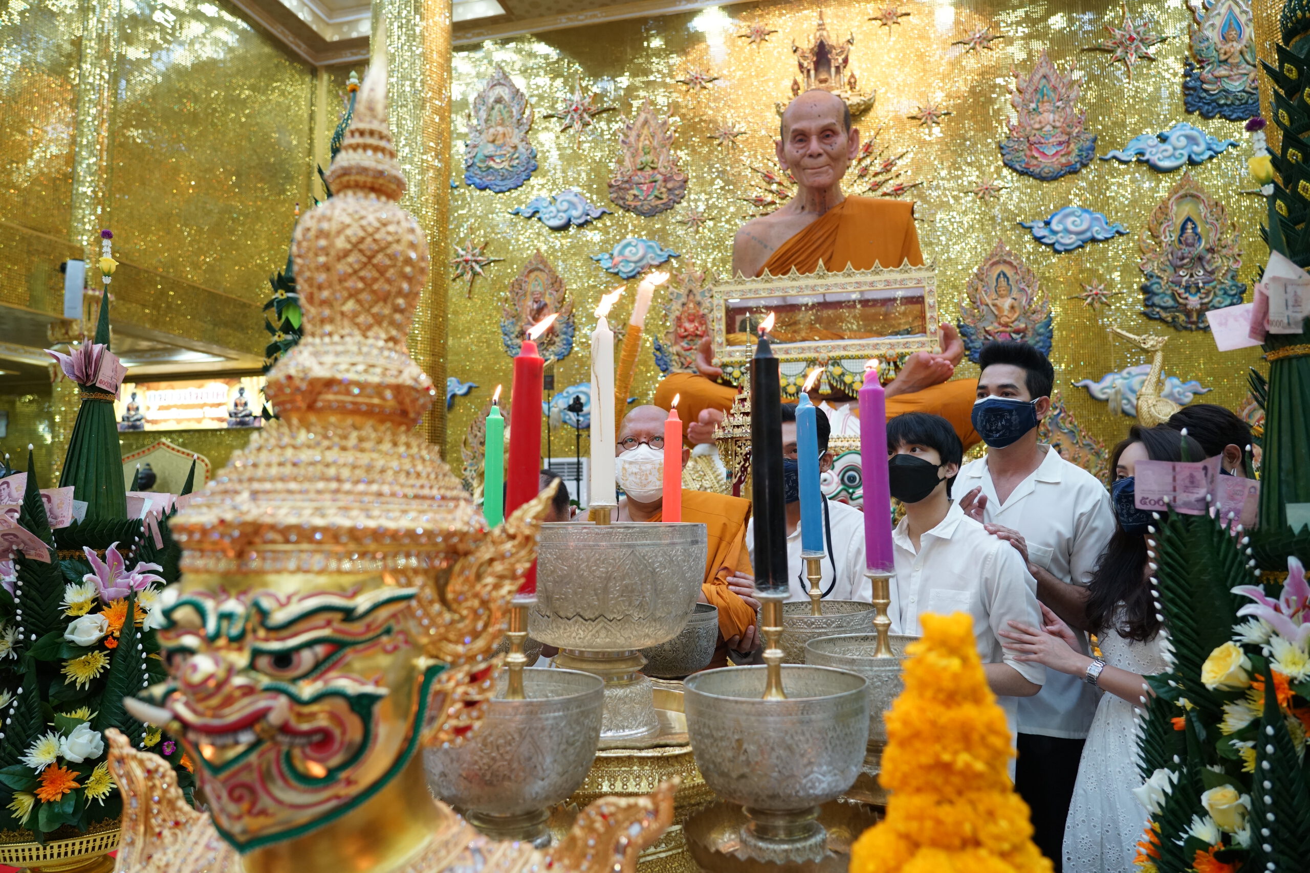 บรรยากาศภายในวิหารมีบุคคลดังจากหลายวงการ โดยเฉพาะคนบันเทิงเดินทางมาร่วมพิธีด้วยจิตศรัทธา เนืองแน่น อาทิ นก-บริพันธ์ ชัยภูมิ นายกสมาคมนักเพลงลูกทุ่งแห่งประเทศไทย, โอบะ เสียงเหน่อ นายกสาคมศิลปินตลก(ประเทศไทย), อ.ภูพาน เพชรปฐมพร, สัญญา พรนารายณ์ , อ๊อด โฟร์เอส , ดำรง วงศ์ทอง , จอมขวัญ กัลยา, อัมพร แหวนเพชร, สามารถ ทองขาว, แซ็ค ชุมแพ, ปุ๋ย รุ่งทิวา คงสนุ่น, เอก ชัชวาล, จเร เชิญยิ้ม, เชษฐ์ เชิญยิ้ม, ป่าน ปานชีวา, กุ้ง ขี้เหล็กสี, ข้าวฟ่าง ฟางข้าว , ทราย ชุมทาง, ยาว จันริด, แนท พรสวรรค์, ต้า-วสันต์, มายด์ กระติ๊บข้าวเหนียว ฯลฯ