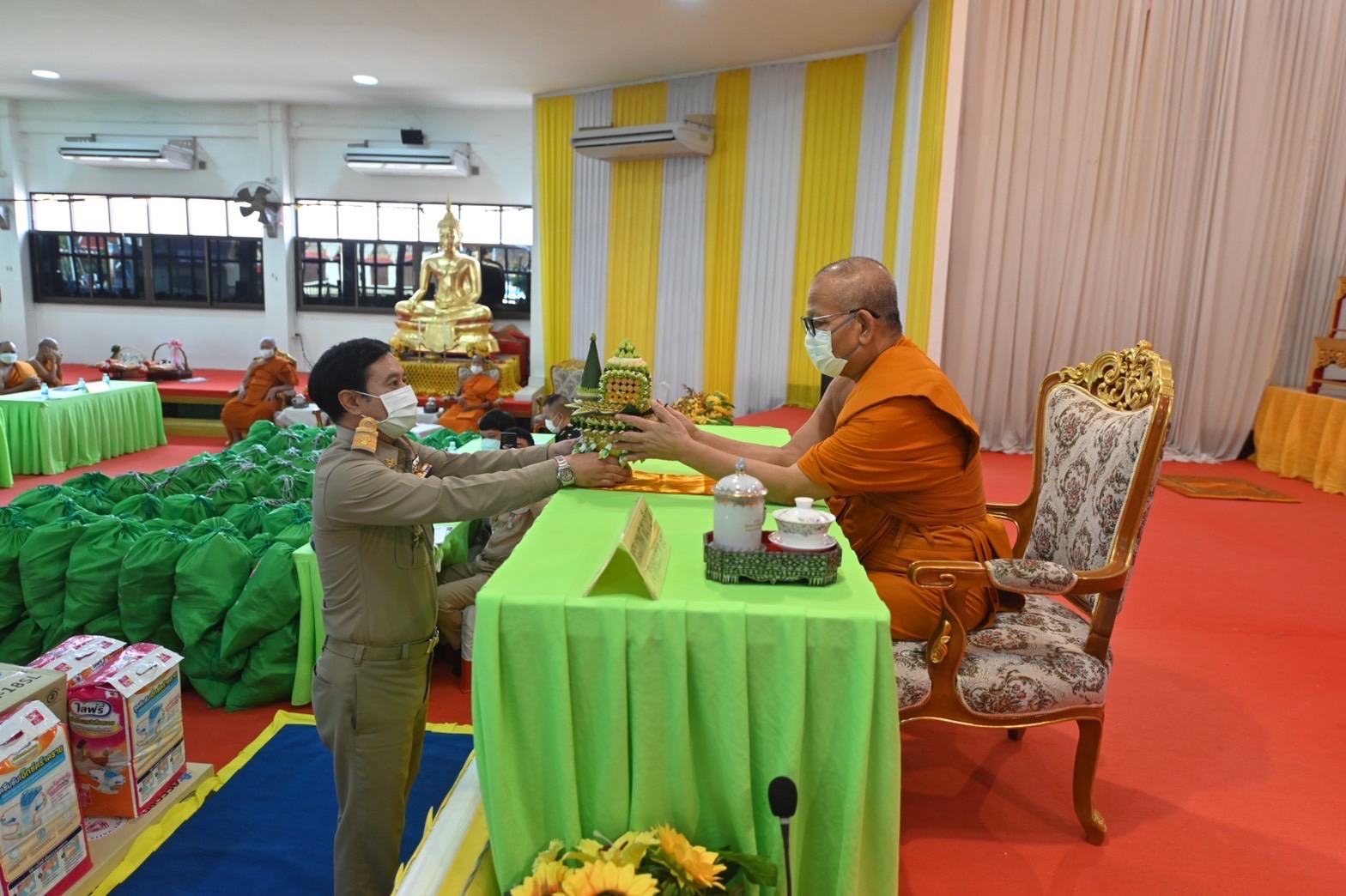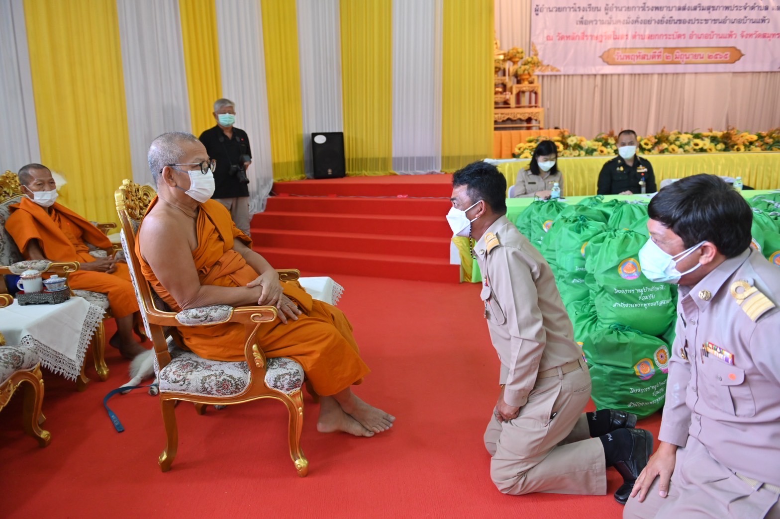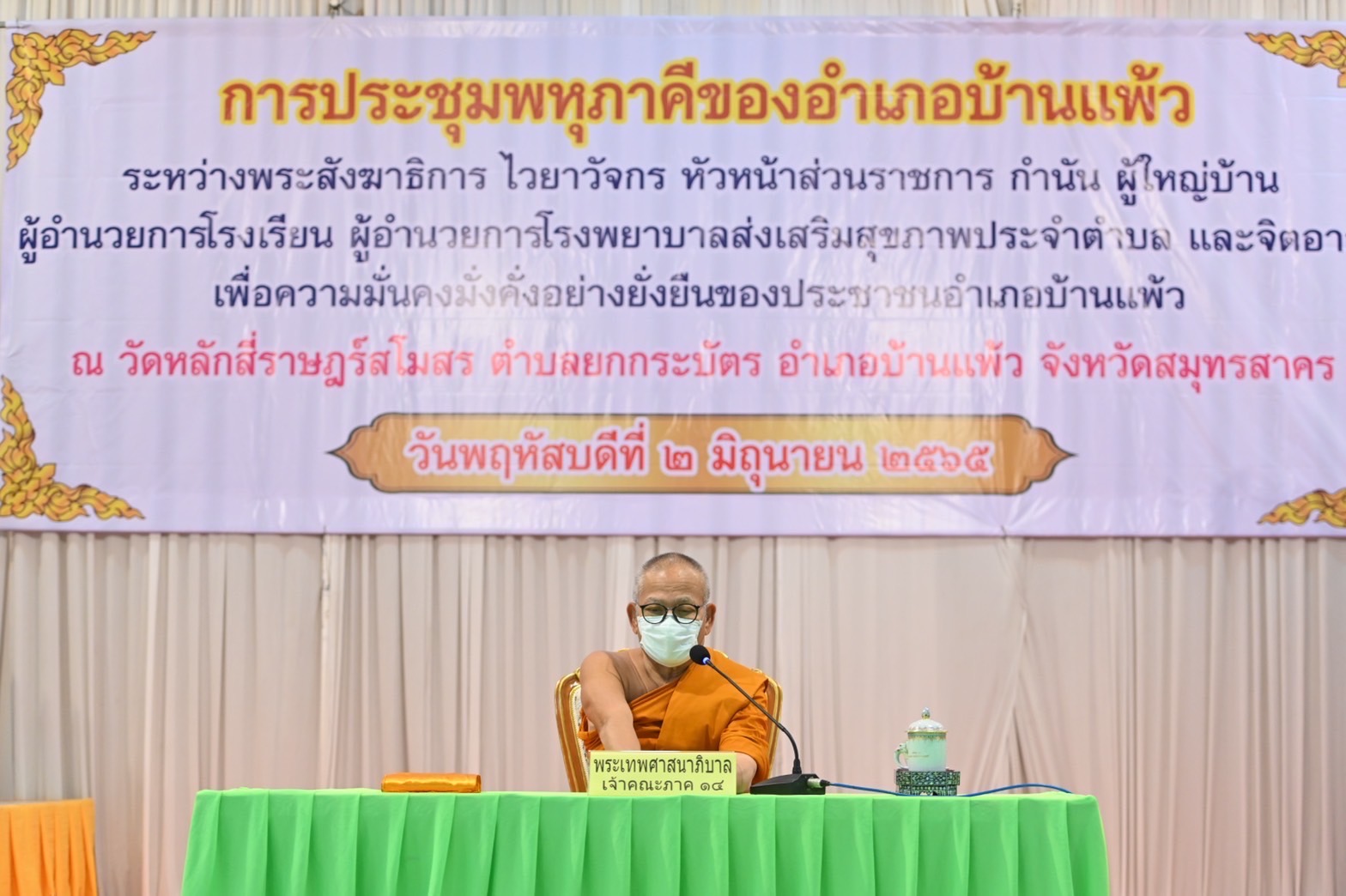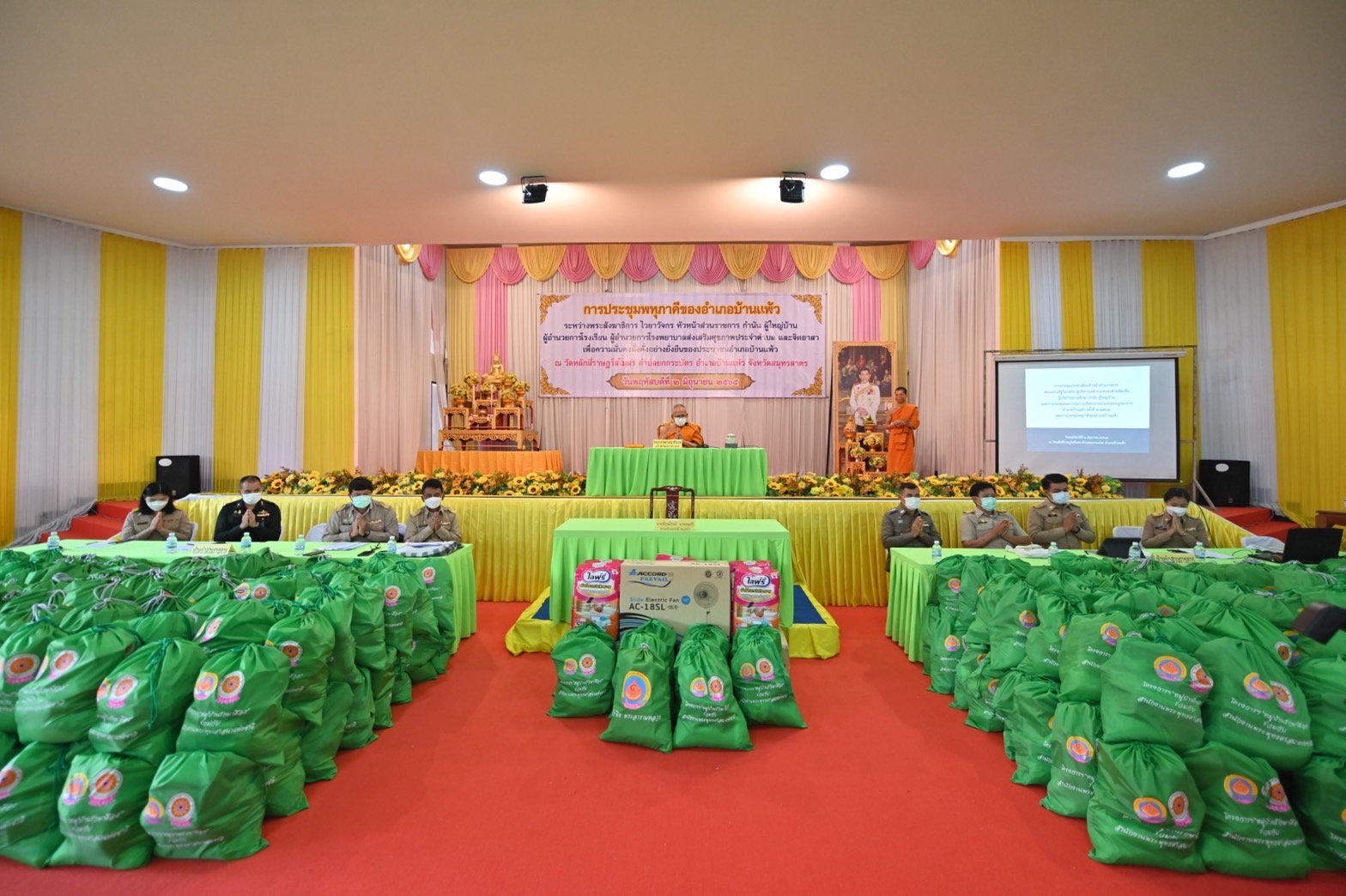 สมุทรสาคร เจ้าคณะภาค14มอบถุงยังชีพและเปิดการประชุมพหุภาคีของอำเภอบ้านแพ้ว