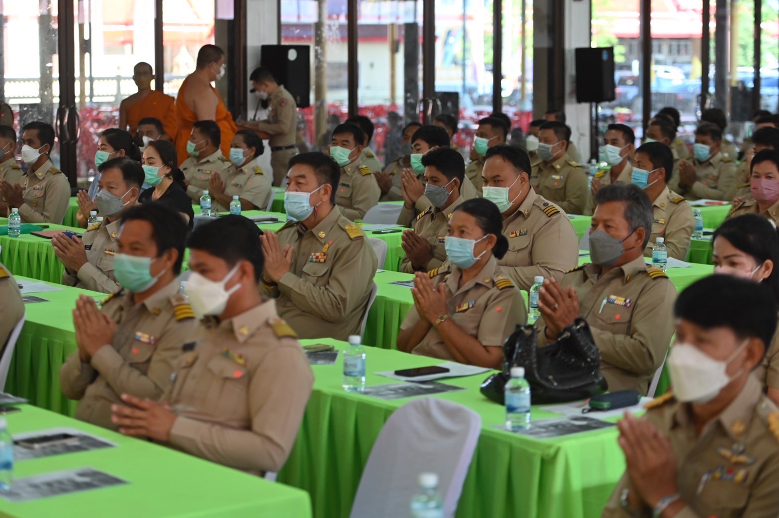 พระเทพศาสนาภิบาล เจ้าคณะภาค14เจ้าอาวาสวัดไร่ขิง พระอารามหลวง อ.สามพราน จ.นครปฐม เป็นประธานในพิธีมอบถุงยังชีพและเปิดการประชุมร่วมกัน ระหว่าง พระสังฆาธิการ ไวยาวัจกร หัวหน้าส่วนราชการ กำนันผู้ใหญ่บ้าน ผู้อำนวยการโรงเรียน ผู้อำนวยการโรงพยาบาลส่งเสริมสุขภาพประจำตำบลและจิตอาสา ในเขตอำเภอบ้านแพ้ว ร่วมด้วย พระเทพสาครมุนี เจ้าคณะจังหวัสมุทรสาคร