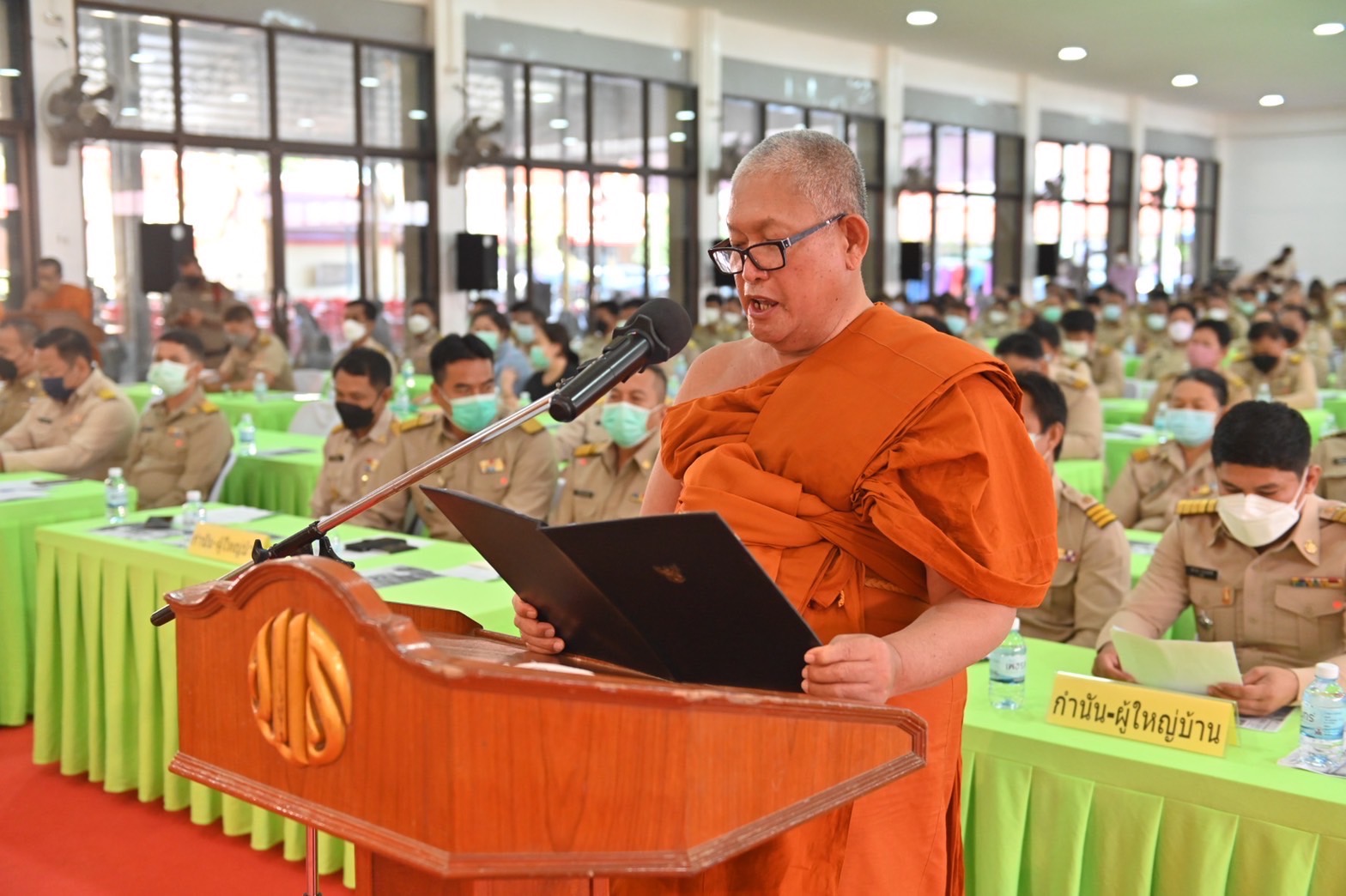 โดยมี พระมงคลพัฒนาภรณ์ เจ้าคณะอำเภอบ้านแพ้ว กล่าวรายงาน พร้อมด้วย นายพิรุณโรจน์ นาคดนตรี นายอำเภอบ้านแพ้ว ในนามตัวแทนอำเภอ บ้านแพ้ว