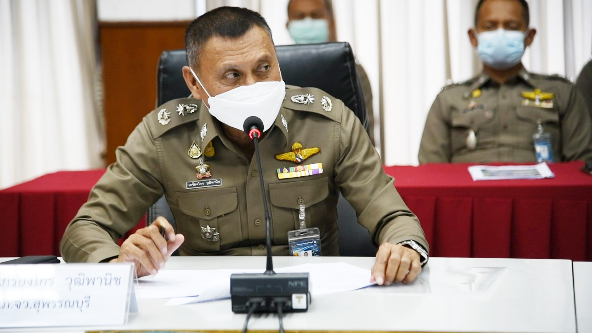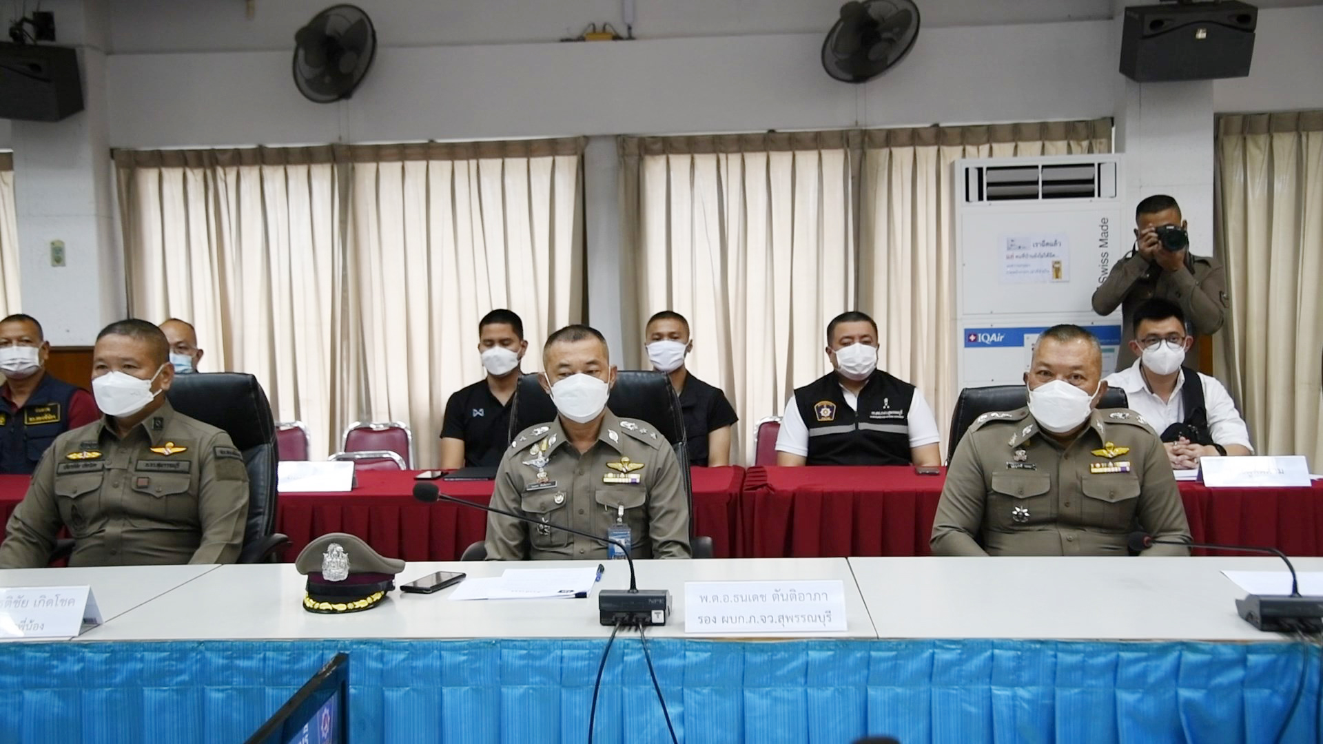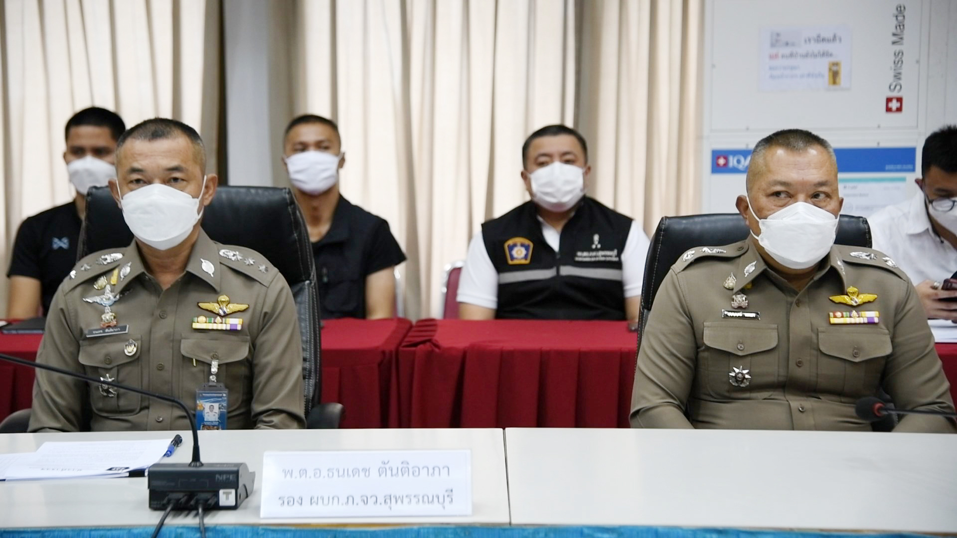 ที่ จ.สุพรรณบุรี พล.ต.ท.ธนายุตม์ วุฒิจรัสธำรง ผู้บัญชาการตำรวจภูธรภาค 7 พล.ต.ต.บุญฤทธิ์ รอดมา รองผู้บัญชาการตำรวจภูธรภาค 7 พล.ต.ต.เกรียงไกร วุฒิพานิช ผู้บังคับการตำรวจภูธรจังหวัดสุพรรณบุรี พร้อมผู้บังคับการตำรวจภูธรจังหวัดสุพรรณบุรี และผู้กำกับทั้ง 16 โรงพัก แถลงข่าวผลการกวาดล้างอาชญากรรมของตำรวจภูธรจังหวัดสุพรรณบุรี