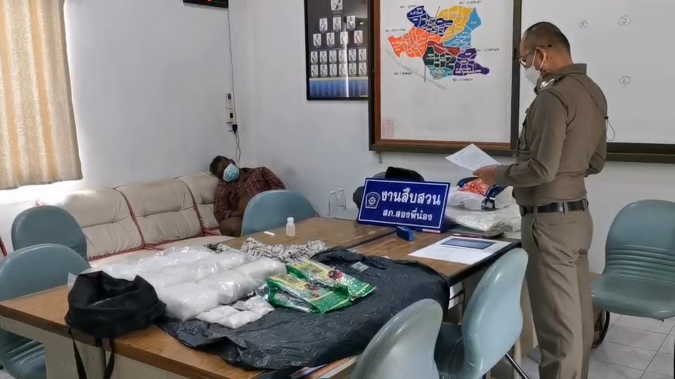 สุพรรณบุรี ผบช.ภ.7แถลงข่าวจับหนุ่ม 38 ปีรับจ้างเฝ้าไอซ์เกือบ 10 กกยัดกระสอบซุกบ้าน