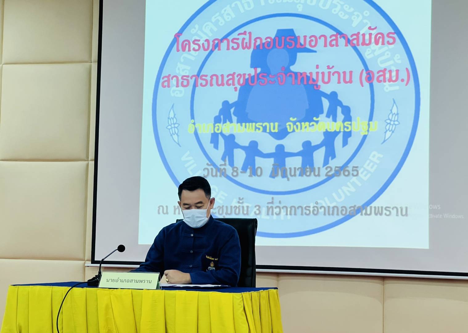 โดยการอบรมตามโครงการ ฝึกอบรมอาสาสมัครสาธารณสุขประจำหมู่บ้าน (อสม.)อำเภอสามพราน จังหวัดนครปฐม ประจำปีงบประมาณ 2565 ในครั้งนี้ ด้วยปัจจุบัน การสาธารณสุขมูลฐานเป็นระบบบริการสาธารณสุข ซึ่งมีการจัดบริการในระดับตำบล หมู่บ้าน โดยอาศัยความร่วมมือของประชาชนและชุมชน เพื่อแก้ไขปัญหาสาธารณสุขในพื้นที่ สร้างเครือข่ายในการทำงาน สร้างระบบบริการสาธารณสุขในชุมชน ซึ่งต้องอาศัยความร่วมมือและการสนับสนุนของชุมชน ตามหลักการของสาธารณสุขมูลฐาน และในการดำเนินงานสาธารณสุขของประเทศไทยให้ความสำคัญในเรื่องของการส่งเสริมสุขภาพ และสนับสนุนให้ประชาชนดูแลสุภาพตนเอง สามารถพึ่งพานตนเองได้อย่างยั่งยืนโดยการมีครือข่ายในการดำเนินงาน