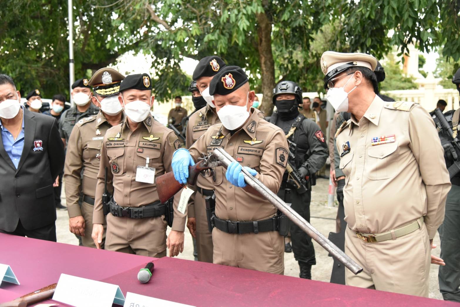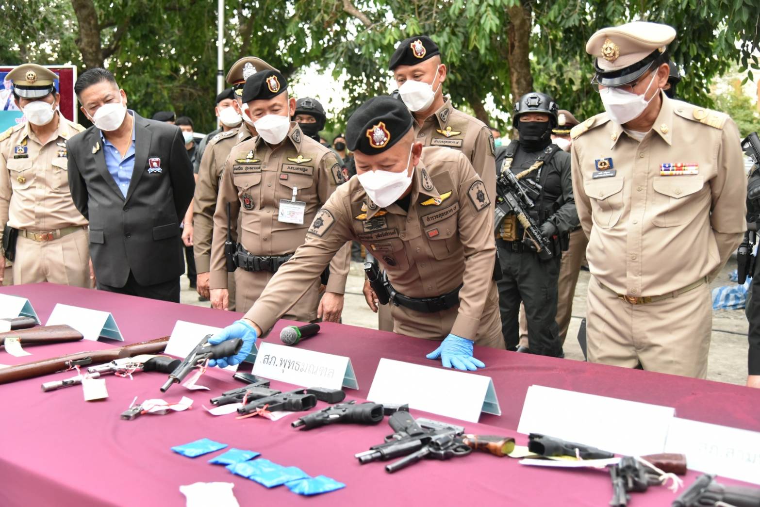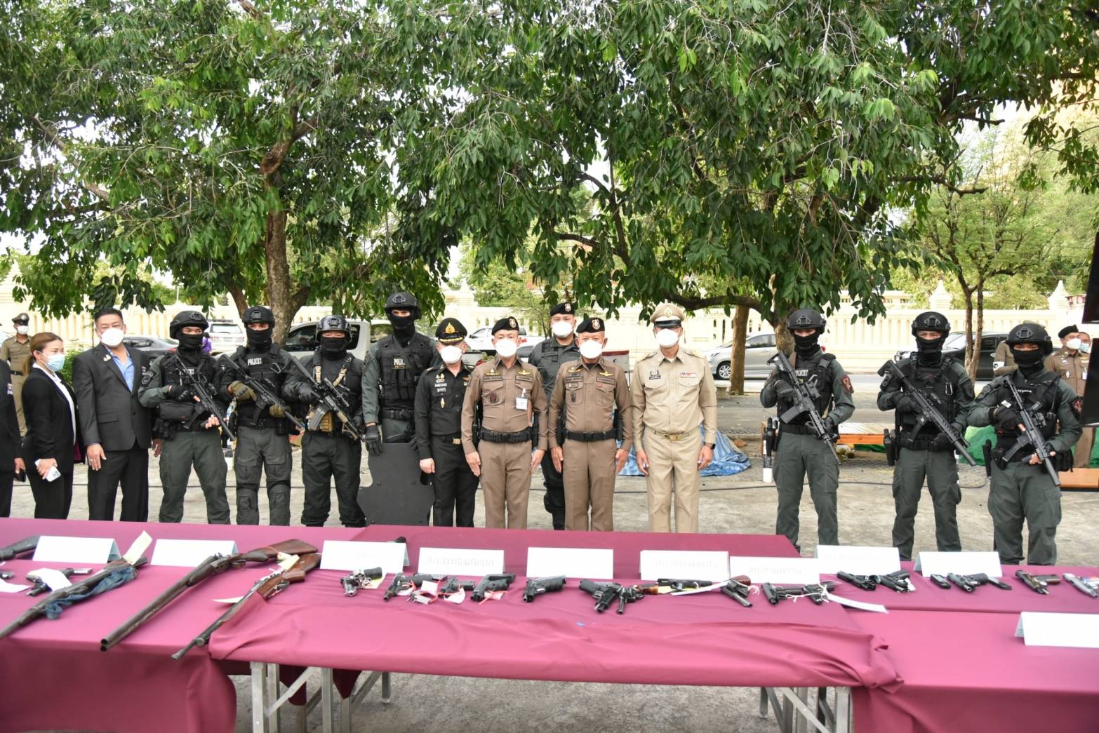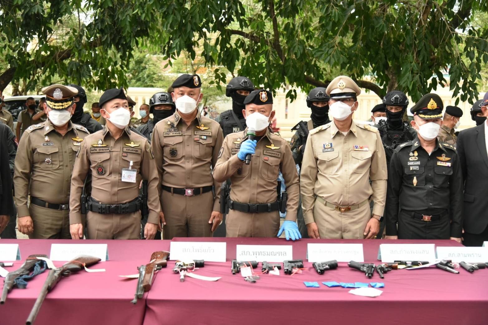 นอกจากนี้ ตำรวจภูธรภาค 7 และตำรวจภูธรจังหวัดนครปฐม ได้แถลงผลการจับกุมผู้ต้องหาตามหมายจับ จำนวน 5 ราย ได้แก่ข้อหาร่วมกันฆ่าผู้อื่นโดยไตร่ตรองไว้ก่อน ร่วมกันพยายามฆ่าผู้อื่นโดยไตร่ตรองไว้ก่อน มีอาวุธปืนไว้ในครอบครองโดยไม่ได้รับอนุญาต พาอาวุธปืนติดตัวเข้าไปในเมือง หมู่บ้าน หรือทางสาธารณะโดยไม่มีเหตุจำเป็นเร่งด่วนตามสมควรแก่พฤติการณ์ โดยไม่ได้รับอนุญาตให้มีอาวุธปืนติดตัว และยิงปืนซึ่งใช้ดินระเบิดโดยใช่เหตุในเมือง หมู่บ้านหรือที่ชุมชน พร้อมของกลางเป็นอาวุธปืนหลายชนิด ซองบรรจุกระสุน เครื่องกระสุนปืน ปลอกกระสุนปืน รถยนต์ รถจักรยานยนต์ และอื่นๆ อีกเป็นจำนวนมาก
