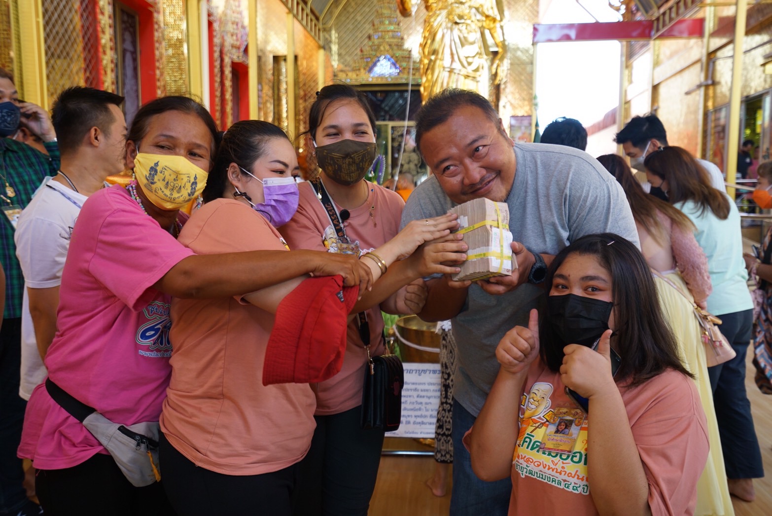 เด็กวัดไผ่ล้อม รวมกว่า 20 ชีวิต ที่ถูกรางวัลสลากกินแบ่งรัฐบาลเลขท้าย 2 ตัว หมายเลข 53 รวม 520 ใบเป็นเงิน 1,040,000 บาท(หนึ่งล้านสี่หมื่นบาท) ได้รวมตัวกันมาถวายกล้วยน้ำว้าดิบจำนวน 108 เครือ นับรวมกันได้ 18,000 ลูก น้ำหนักรวม 1,380 กิโลกรัม รวมเป็นเงินกว่า 20,928 บาท