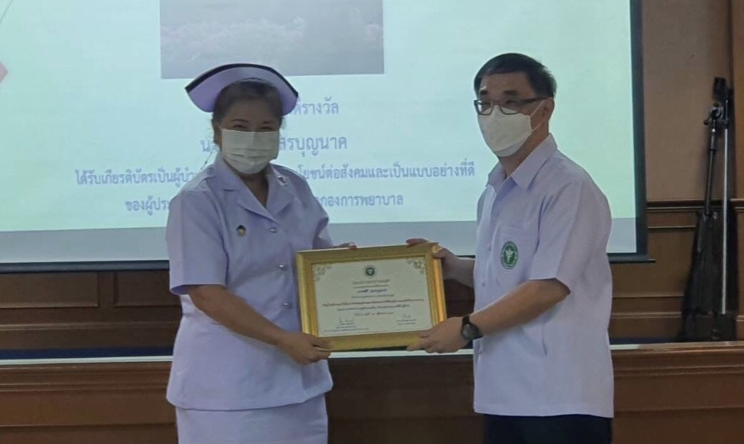 นางพัชรี เกษรบุญนาค รองผู้อำนวยการโรงพยาบาลสามพราน ที่ได้รับเกียรติบัตรเป็นผู้บำเพ็ญตนก่อให้เกิดประโยชน์ต่อสังคมและเป็นแบบอย่างที่ดีของผู้ประกอบวิชาชีพการพยาบาล จากกองการพยาบาล