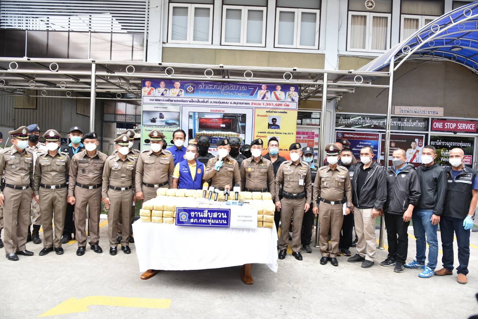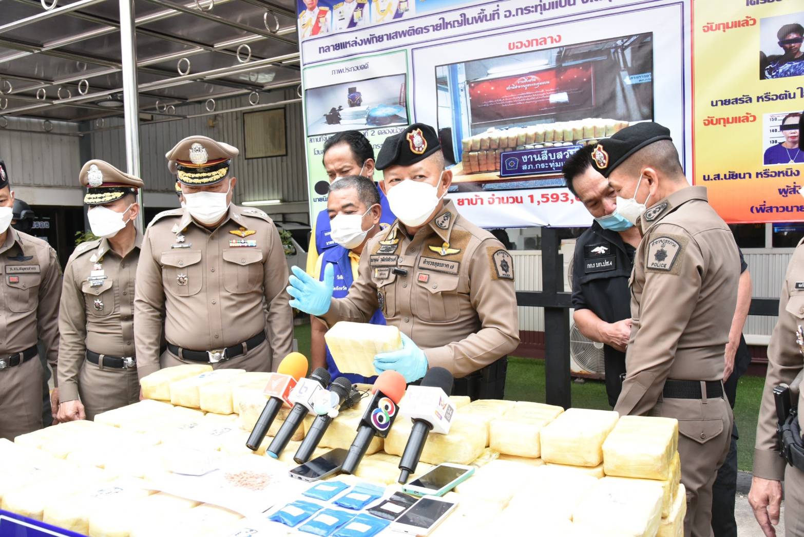 สมุทรสาคร ผบช.ภ.7 แถลงผลตำรวจกระทุ่มแบนทลายแหล่งพักยาบ้ากว่า 1.5 ล้านเม็ด เครือข่ายสมนึกสุราษฎร์ธานี คุมเข้มปราบปรามอาชญากรรมก่อนการประชุม APEC
