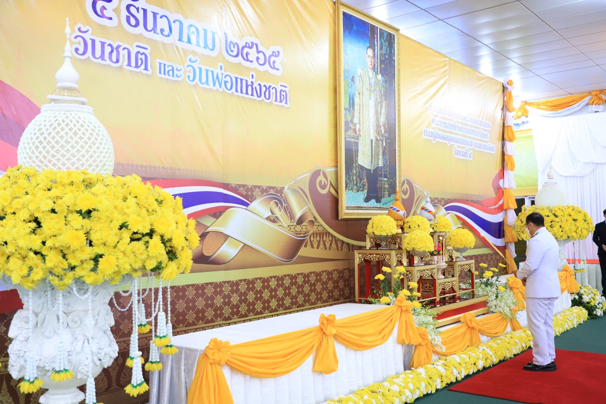 พร้อมด้วย หัวหน้าส่วนราชการ ข้าราชการ หน่วยงานรัฐวิสาหกิจ องค์กรปกครองส่วนท้องถิ่น ภาคเอกชน และพสกนิกรทุกหมู่เหล่า เพื่อน้อมรำลึก ถึงพระมหากรุณาธิคุณที่ทรงมีต่อพสกนิกรปวงชนชาวไทยอย่างหที่สุดมิได้