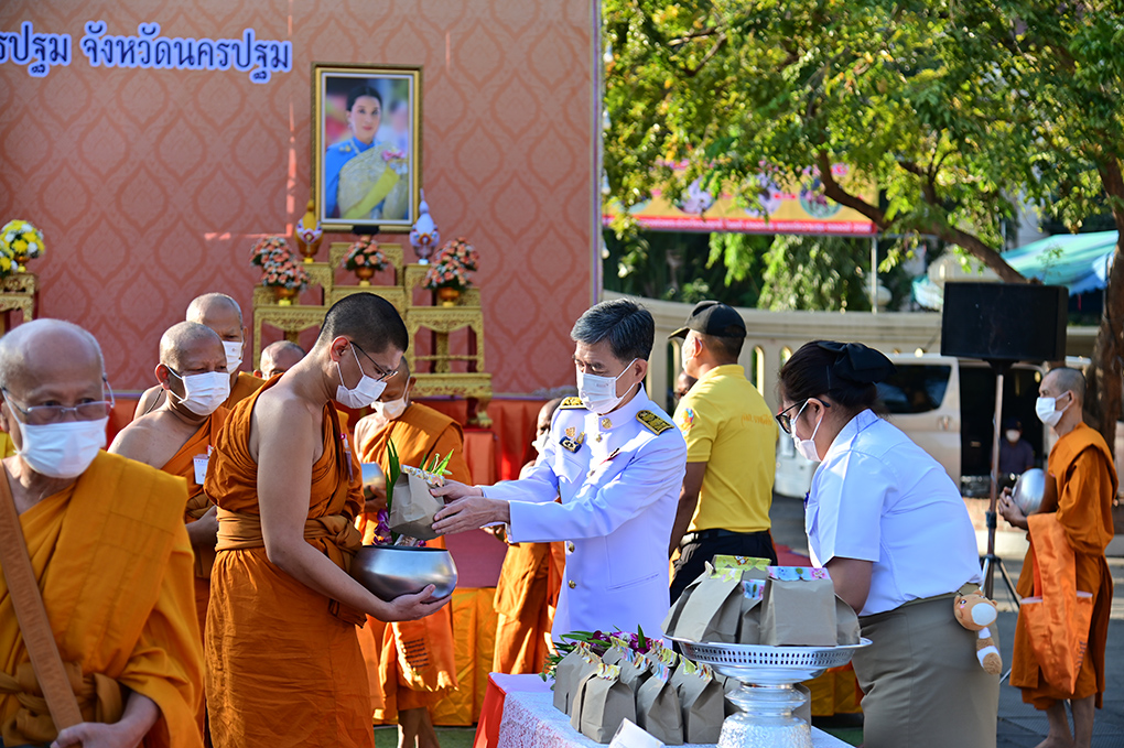 จังหวัดนครปฐม จัดพิธีทำบุญตักบาตรพระสงฆ์ 99 รูป โครงการบรรพชาอุปสมบท 99 รูป ถวายพระพรชัยมงคล สมเด็จพระเจ้าลูกเธอ เจ้าฟ้าพัชรกิติยาภา นเรนทิราเทพยวดี กรมหลวงราชสาริณีสิริพัชร มหาวัชรราชธิดา