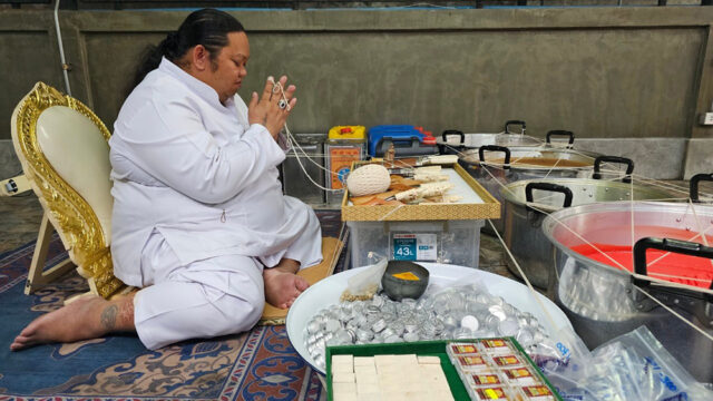 อาจารย์แขก รือเสาะ เป็นประธานในพิธี จุดตะเกียง 5 เทพโชคลาภและเสกสีผึ้งพรายนางตานี