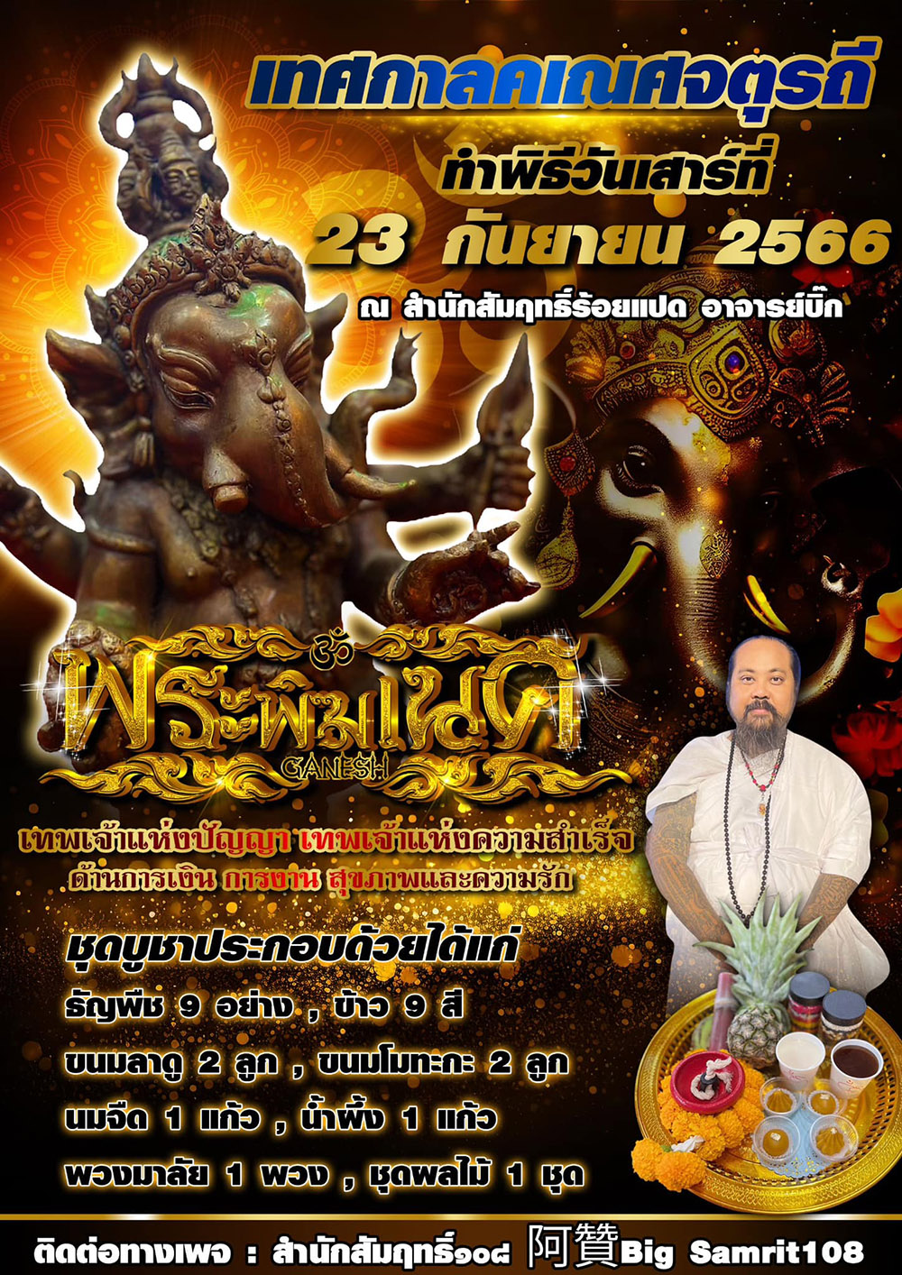 อาจารย์บิ๊ก สำนักสัมฤทธิ์ร้อยแปด เจ้าเเห่งรัตติกาล(นายสัมฤทธิ์ ออประเสริฐ) เป็นประธานจัดพิธีเทศกาลคเณศจตุรถี
