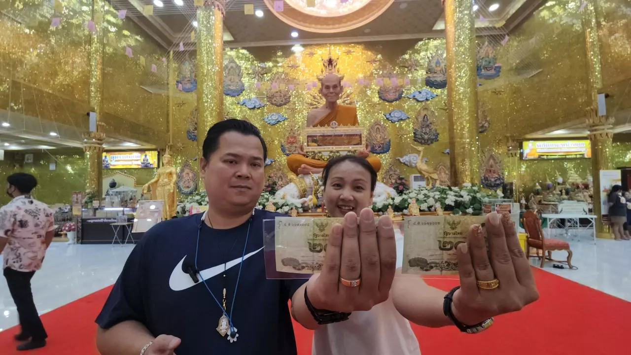 เมื่อได้เห็นพิธีกรรมและเชื่อว่ามีความศักดิ์สิทธิ์และศรัทธามาก จึงได้มาลงยันต์กับหลวงพี่น้ำฝน สำหรับเรื่องโชคลาภแล้ว วันนี้ได้ธนบัตรเงินขวัญถุงกลับไปเป็นเลขมงคล โดยนายธนวรรธน์ได้หมายเลขลงท้าย 6 9 5 และ น.ส.พิมพ์พิชา ได้หมายเลข 6 0 2 ถือว่าเป็นเลขมงคลจากเงินขวัญถุง และจะนำเลขมงคลขวัญถุงไปเสี่ยงโชค หากได้โชคสมปรารถนาก็จะมาทำบุญใหญ่ให้หลวงพ่อพูลอีกครั้ง.