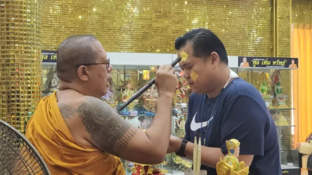 สำหรับบรรยากาศเป็นไปด้วยความขลัง สาธุชนที่ศรัทธามาต่อแถวเข้าคิวเพื่อรอลงนะหน้าทอง ผู้ที่ลงนะหน้าทองจะได้รับแผ่นทองคำเปลว จำนวน 9 แผ่น โดยปิดทองที่บริเวณหน้าผาก 5 แผ่น บริเวณแก้มด้านซ้าย 1 แผ่น แก้มด้านขวา 1 แผ่น ฝ่ามือด้านซ้าย 1 แผ่น ด้านขวา 1 แผ่น จากนั้นหลวงพี่น้ำฝนจะอธิษฐานจิตลงยันต์ที่เนื้อทองคำที่แปะติดไว้บนใบหน้า พร้อมบริกรรมคาถา เพื่อความเป็นสิริมงคลหรือหนุนดวง