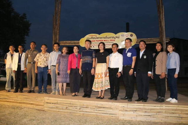 ที่บริเวณหน้าโรงงานกระดาษไทยกาญจนบุรี นายวุฒิพงษ์ สุภัควนิช รองผู้ว่าราชการจังหวัดกาญจนบุรี พร้อมด้วย นางสาวสรียา บุญมาก ผู้อำนวยการ การท่องเที่ยวแห่งประเทศไทย (ททท.) สำนักงานกาญจนบุรี นางจารีรัตน์ บุญประดิษฐ รองปลัดองค์การบริหารส่วนจังหวัดกาญจนบุรี และนายอนุสรณ์ ตรียะเวชกุล ผู้จัดการฝ่ายปฏิบัติการภาค 4 บริษัท วิริยะประกันภัย จำกัด (มหาชน) ร่วมแถลงข่าวการจัดงาน “งานศิลป์ อาหารถิ่นกาญจน์” (KAN Paper Mill 2024 : The Moment of Arts & Local Flavours) เชิญชวนนักท่องเที่ยวมาเสพย์งานศิลป์ ชิมอาหารถิ่นขึ้นชื่อ ระหว่างวันที่ 2-4 กุมภาพันธ์ 2567 นี้ ที่โรงงานกระดาษไทยกาญจนบุรี อำเภอเมือง จังหวัดกาญจนบุรี
